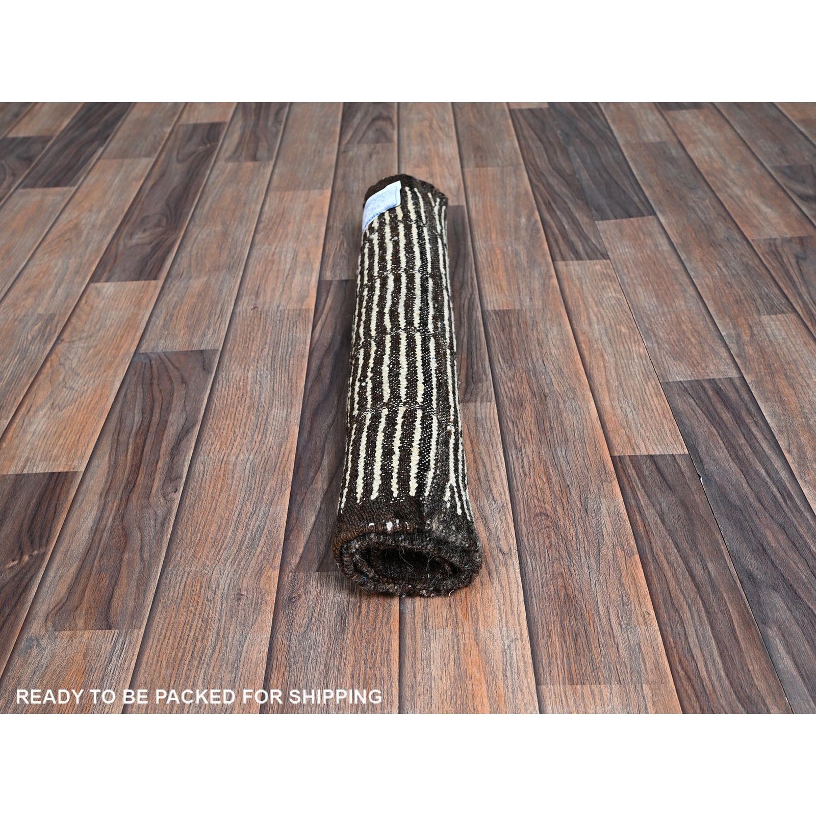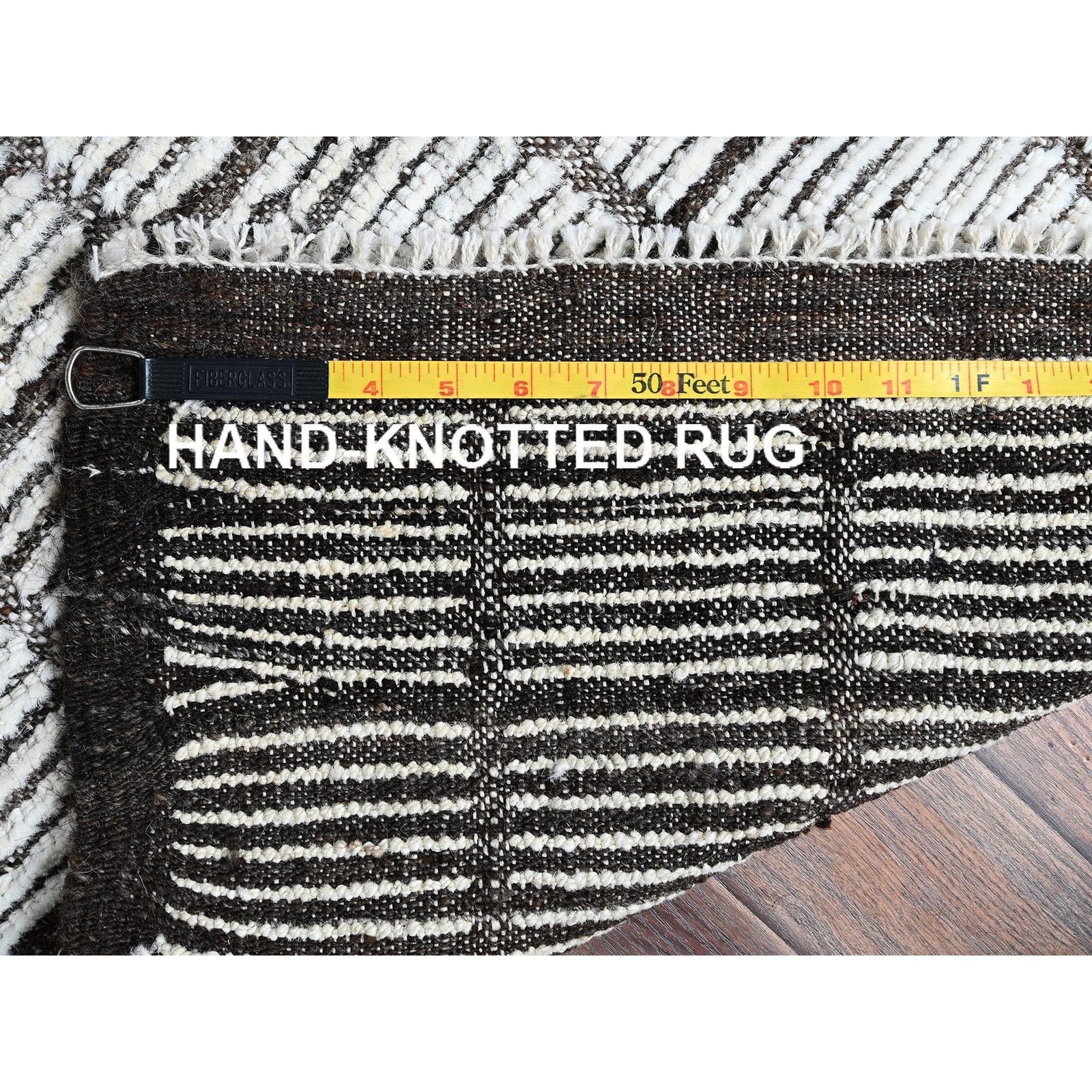 2'2"X2'8" White Moroccan Weave With Grid Design Wool Hand Knotted Mat Rug