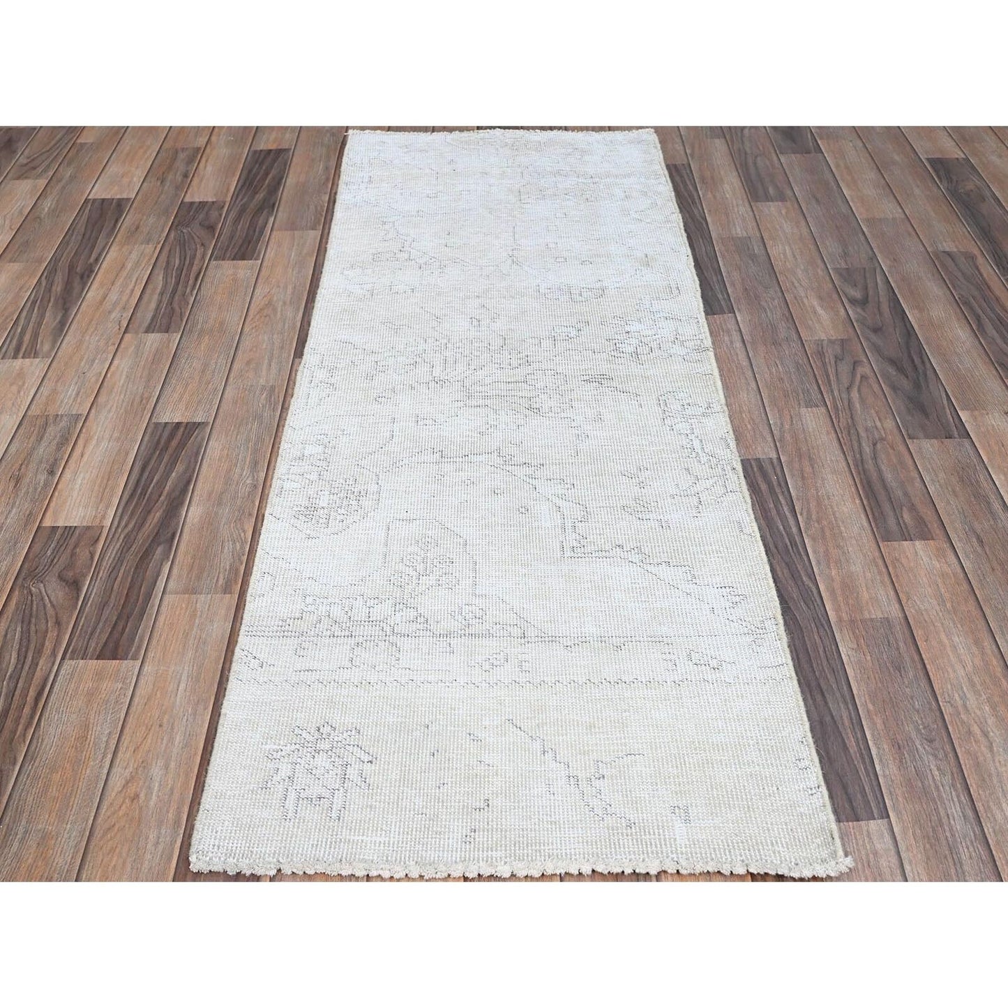 2'2"X5'10" White Hand Knotted Vintage Zoroastrian Tebraz Oriental Rug