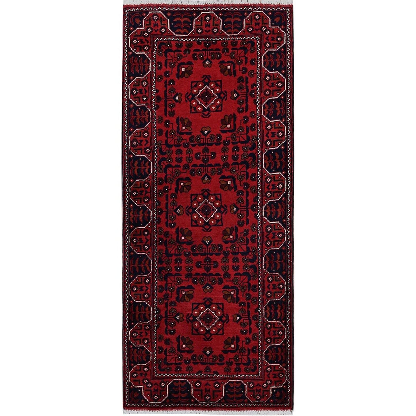 2'2"X5'4" Red Afghan Khamyab Tribal Design All Wool Hand Knotted Runner Rug