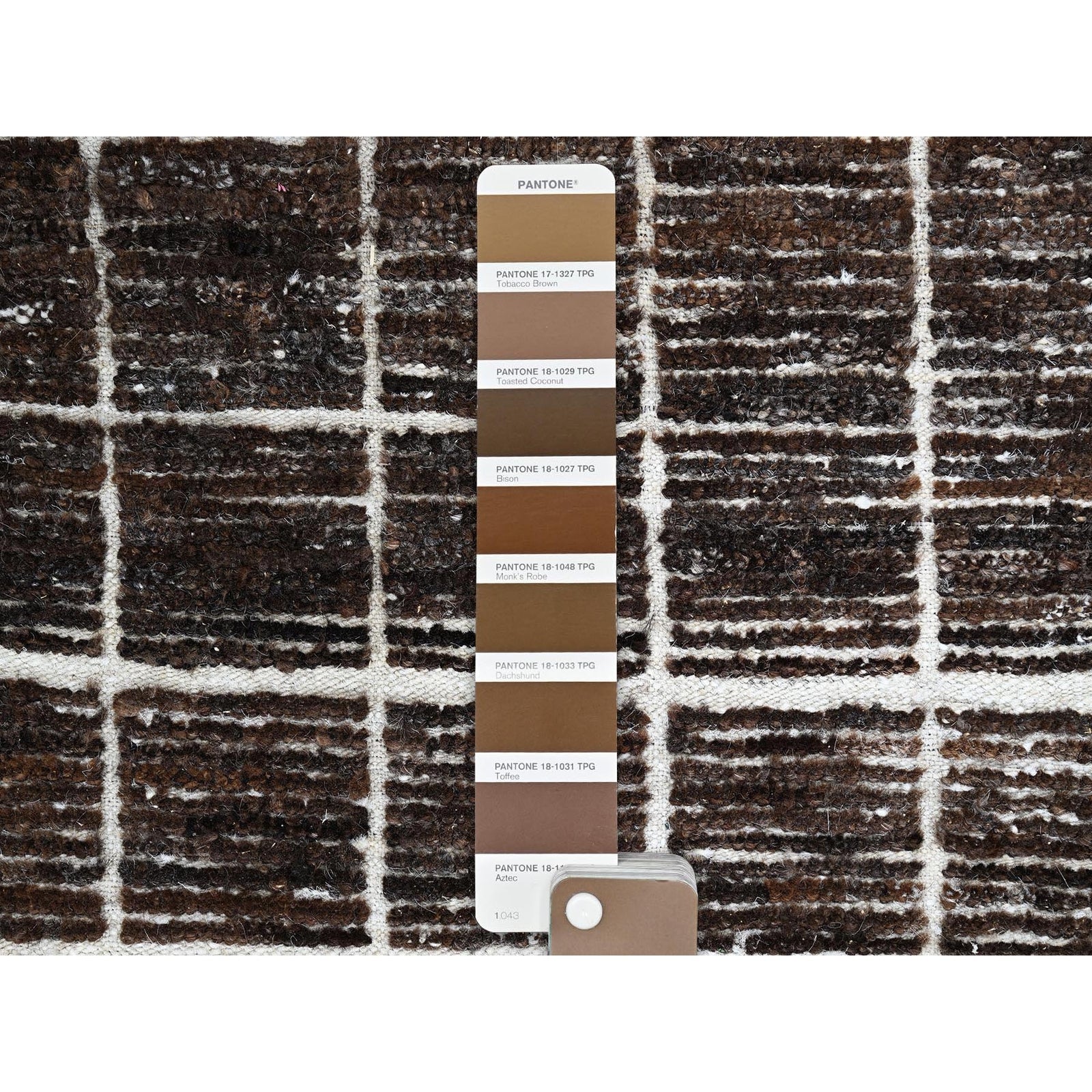 2'3"X2'8" Brown Moroccan Weave Grid Design Wool Hand Knotted Sample Rug