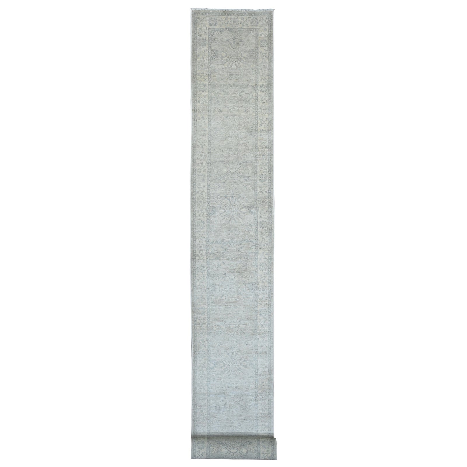 2'3"X29'4" Gray Heris Design High Mountain Wool Hand Knotted Runner Rug