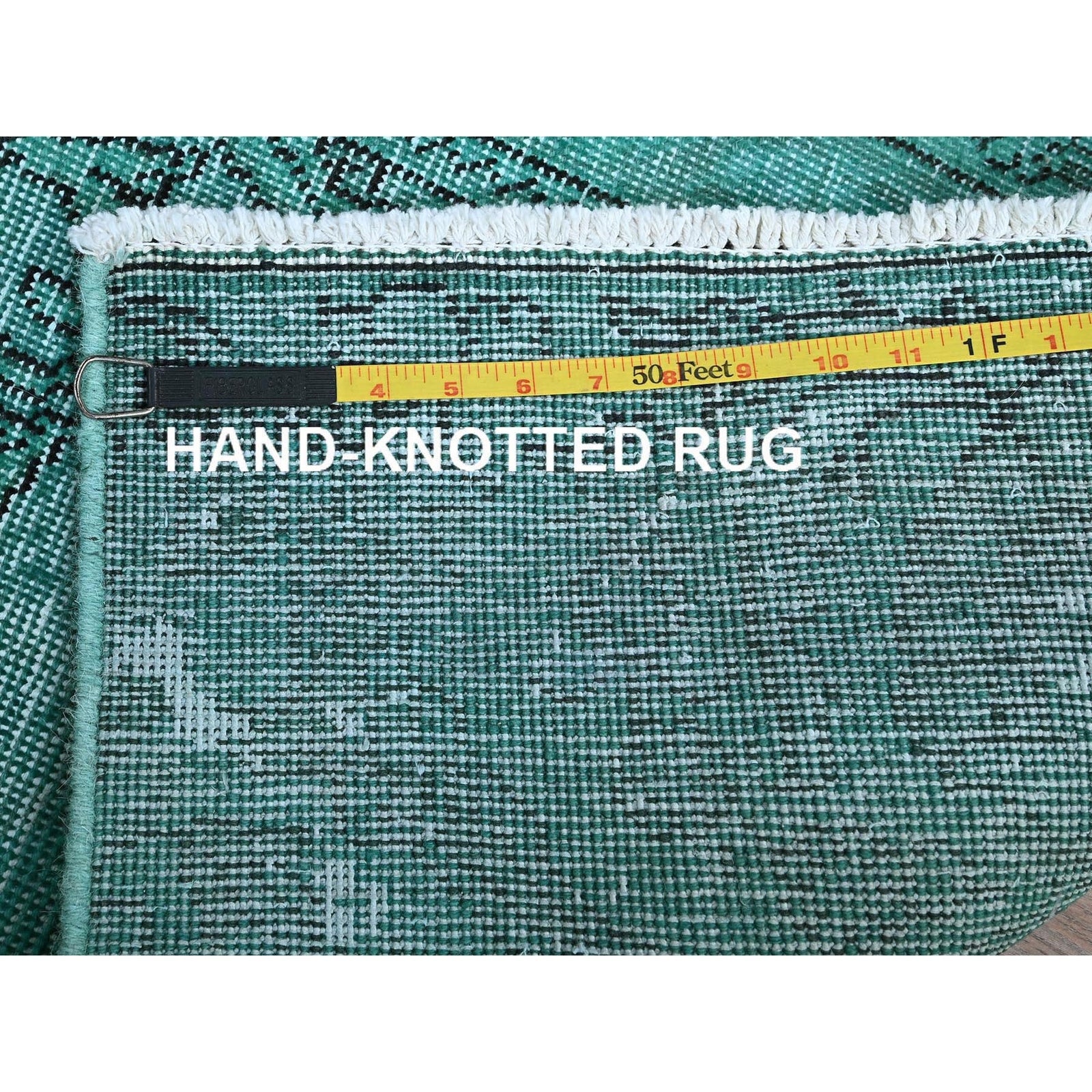 2'3"X7'5" Green Overdyed Vintage Zoroastrian Hand Knotted Wool Runner Rug