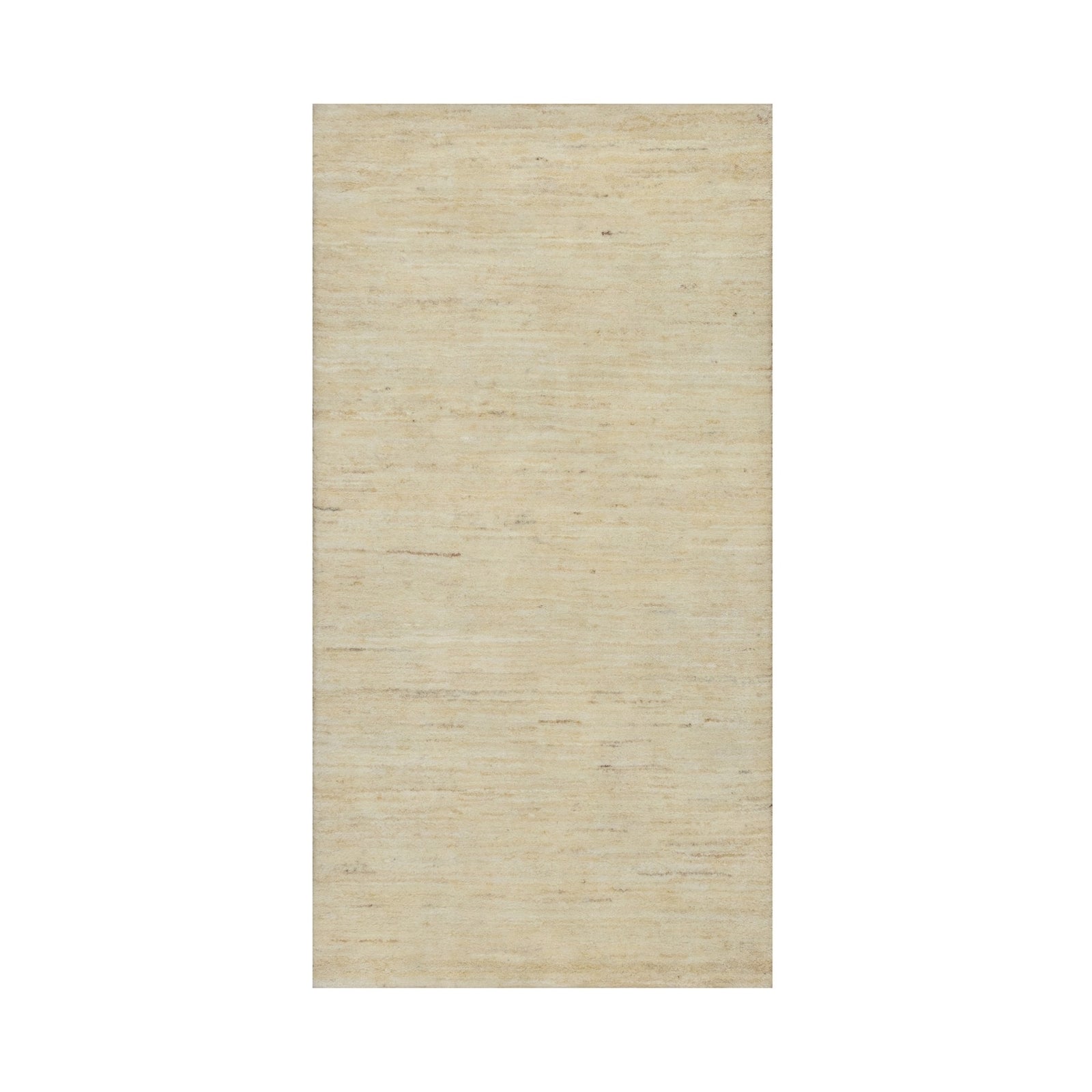 2'4"X11'6" White Plain Design Modern Pure Wool Hand Knotted Runner Rug