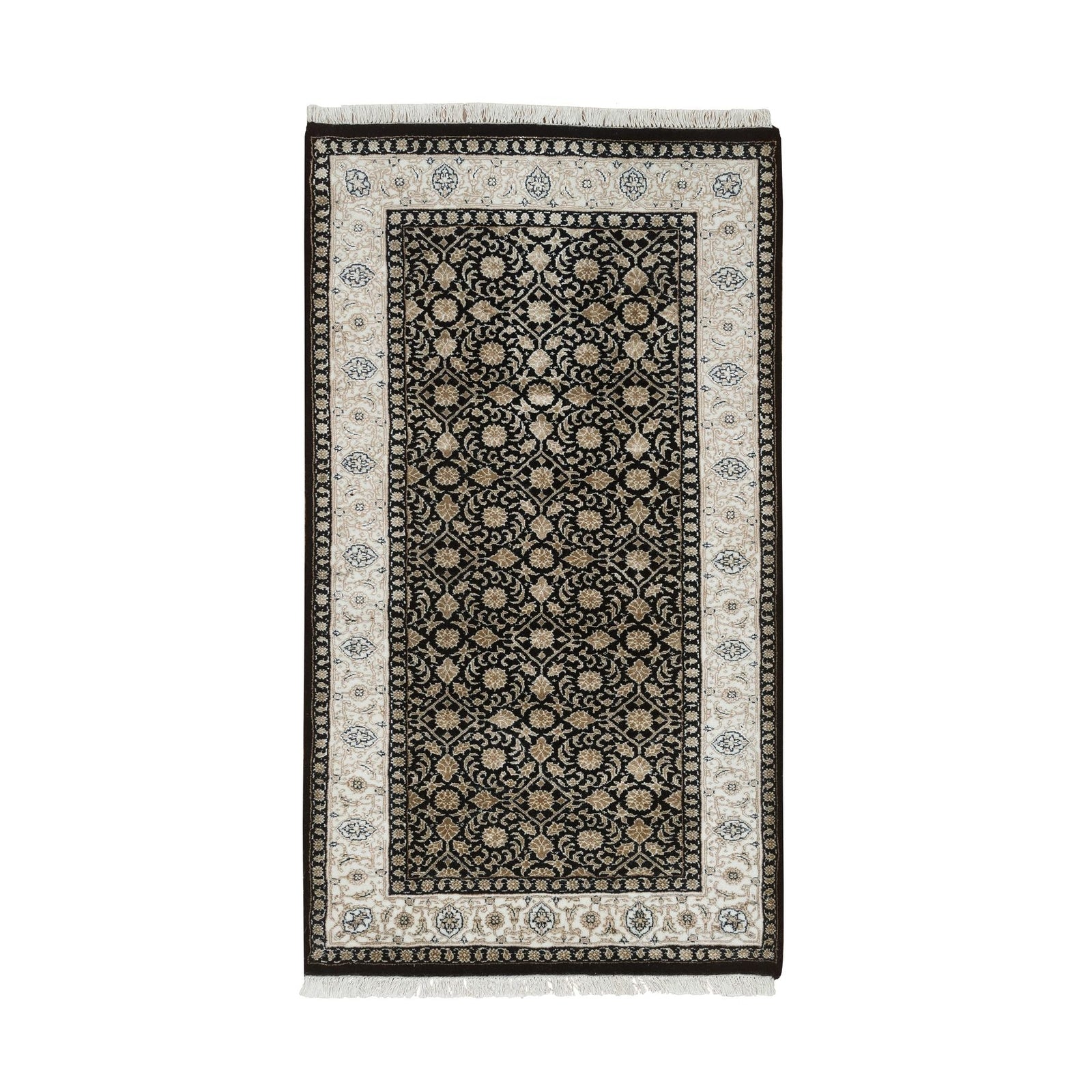 2'4"X4'7" Black Herrita Design 250 Kpsi Organic Wool Hand Knotted Rug