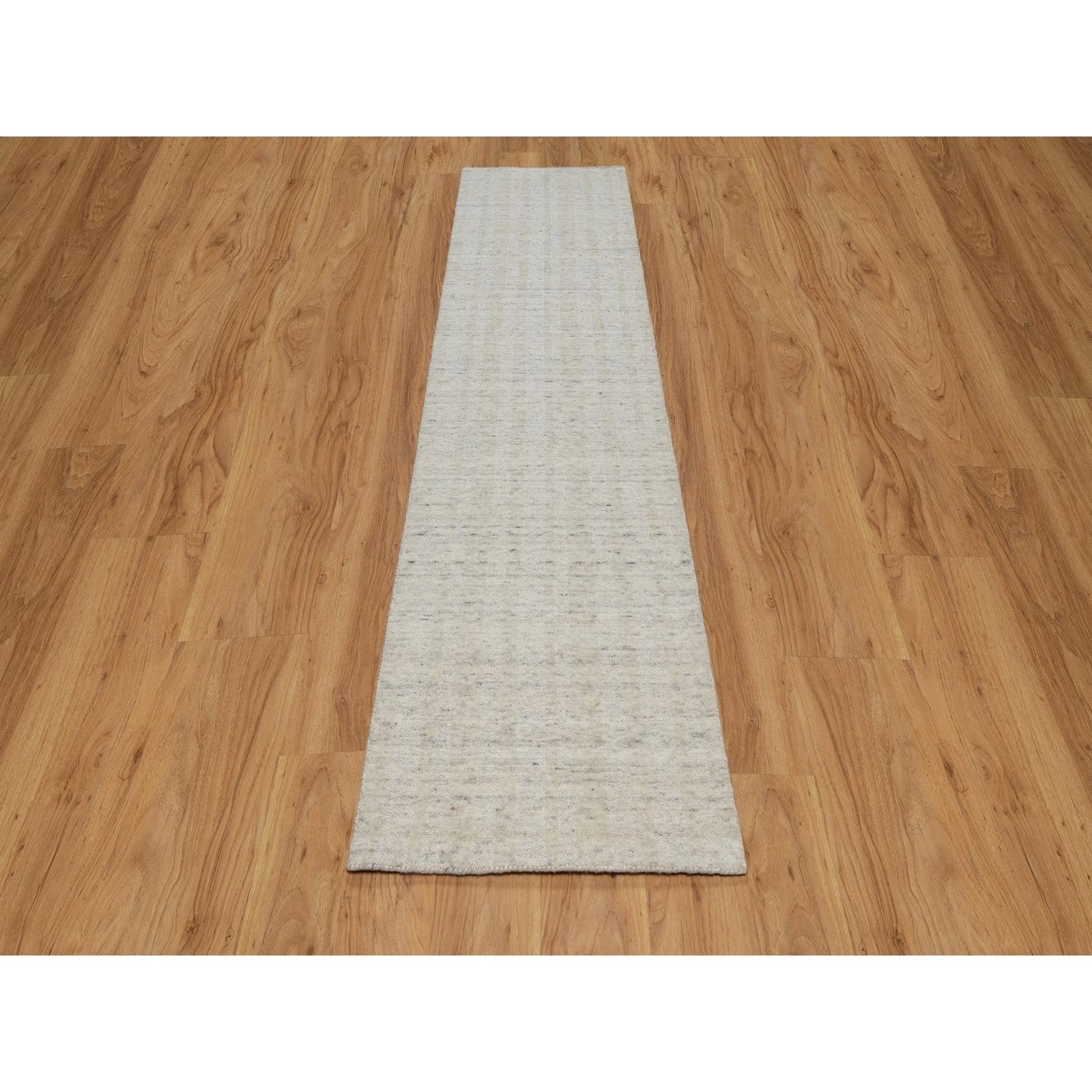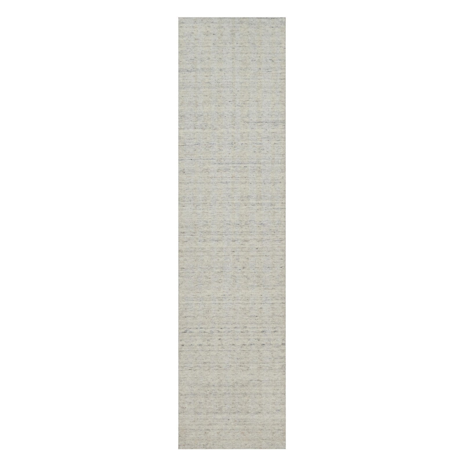 2'5"X10' Ivory Hand Loomed Vertical Stripe Design Natural Wool Runner Rug