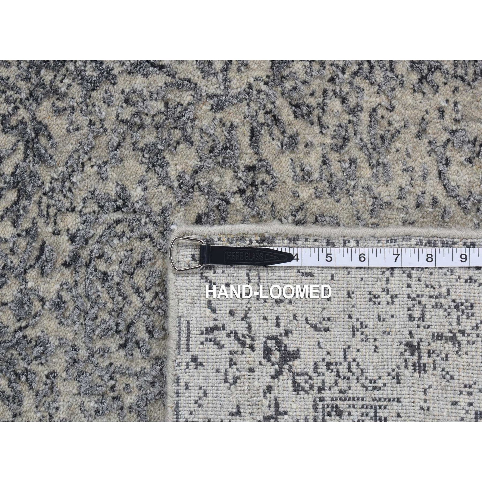 2'5"X10'1" Gray Fine Jacquard Hand Loomed Erased Wool/Silk Runner Rug