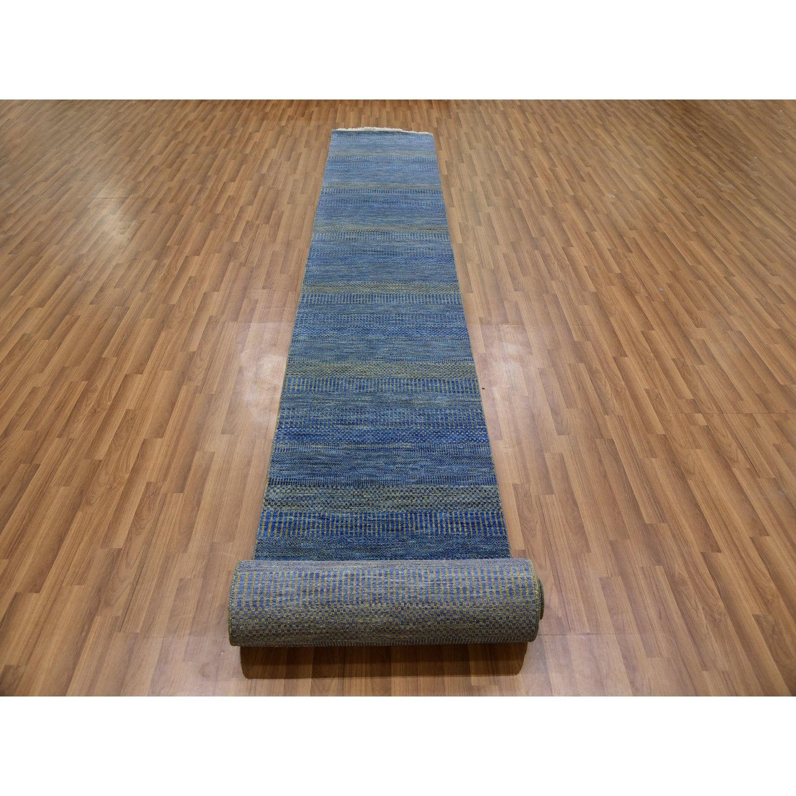 2'5"X20' Aegean Blue Grass Design Xl Runner Rug Hand Knotted Dyed Wool