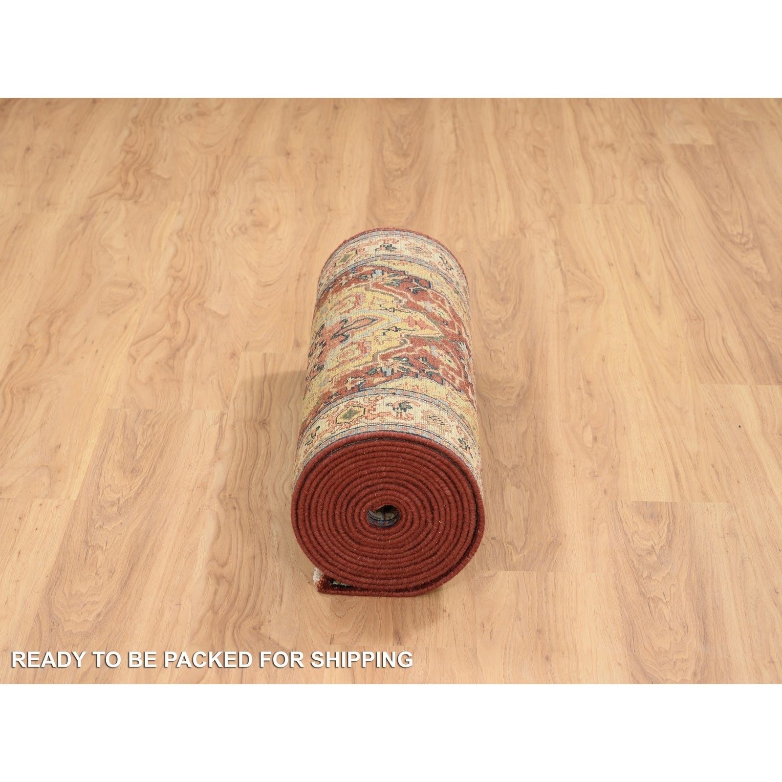 2'5"X20'1" Red Antiqued Fine Heris Wool Hand Knotted Xl Runner Rug