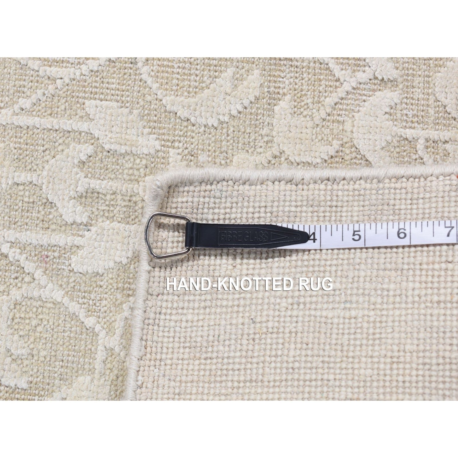 2'5"X6' Ivory Hand Knotted Tone On Tone Pure Silk With Wool Runner Rug