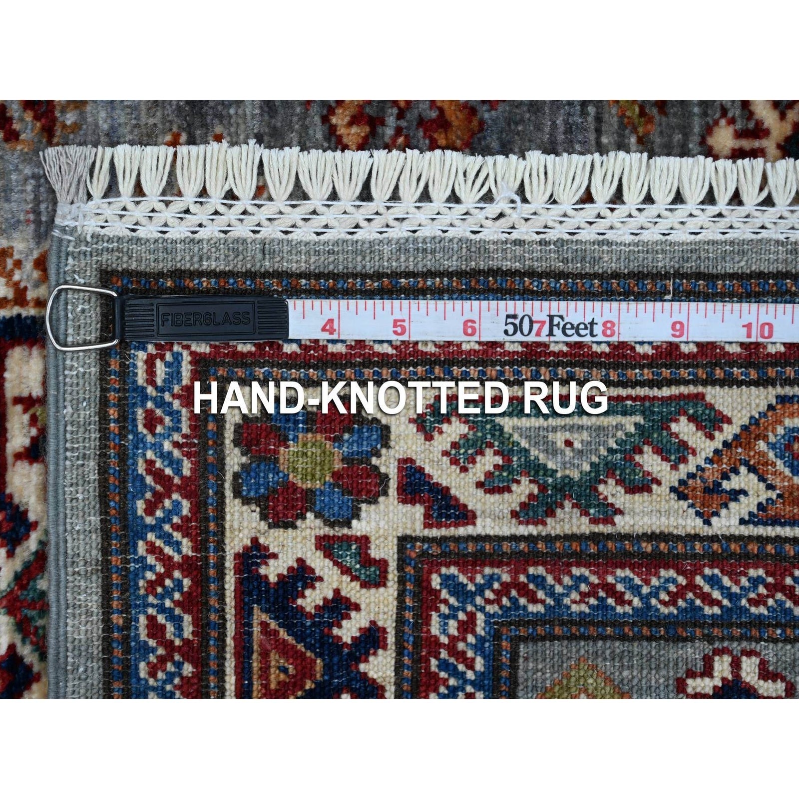 2'5"X6'10" Gray Hand Knotted Super Kazak Medallions Wool Oriental Rug