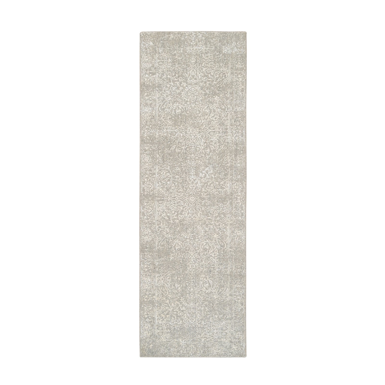 2'5"X7'10" Beige Fine Jacquard Wool And Silk Hand Loomed Runner Rug