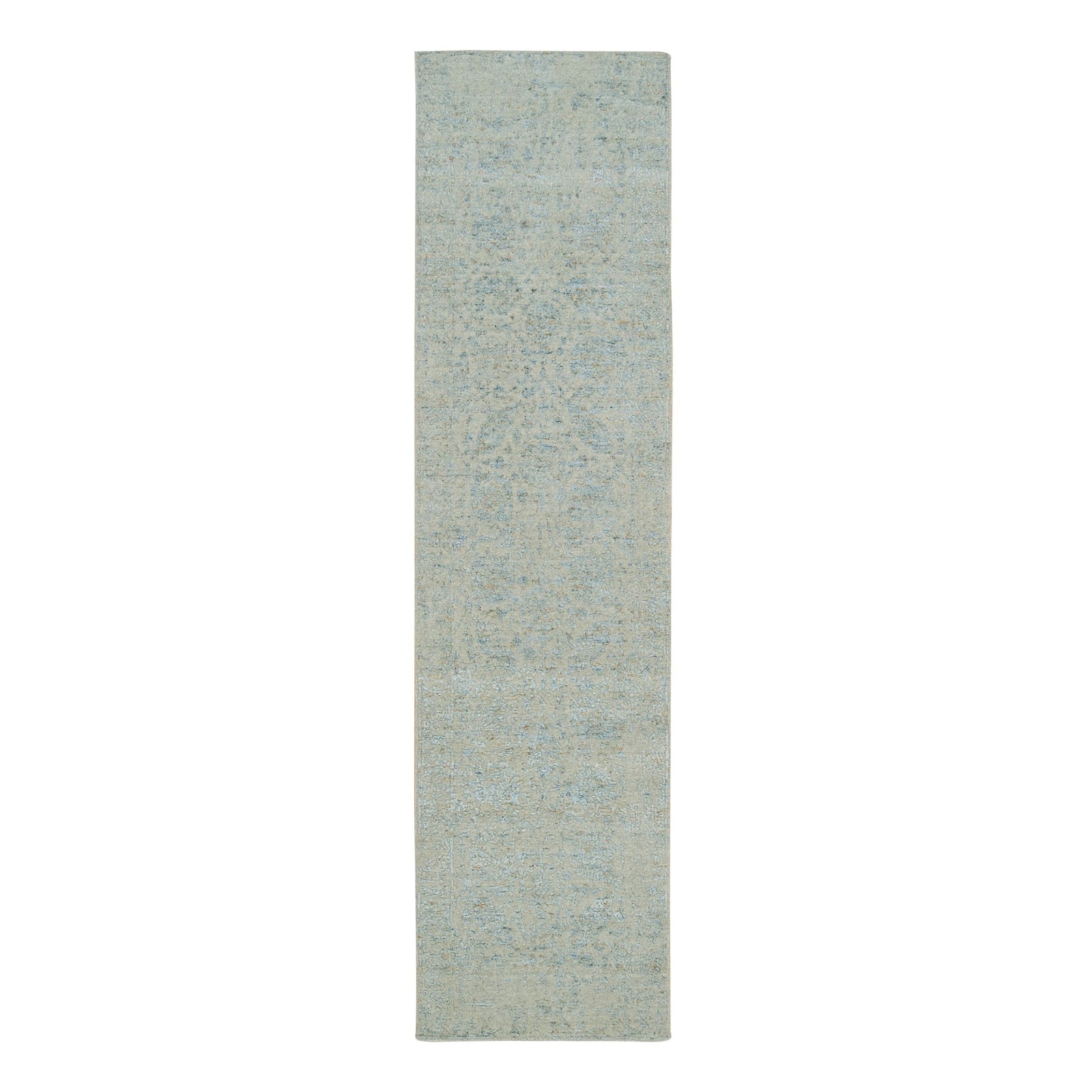 2'6"X10' Gray Fine Jacquard Hand Loomed Wool And Silk Runner Rug