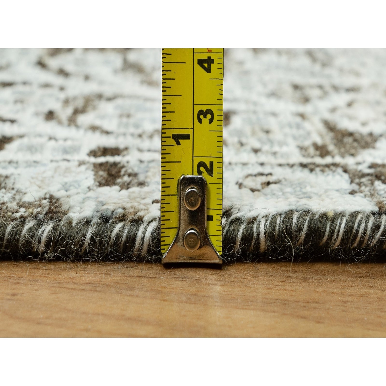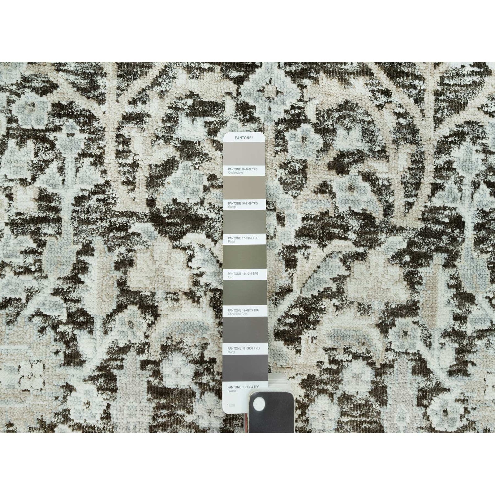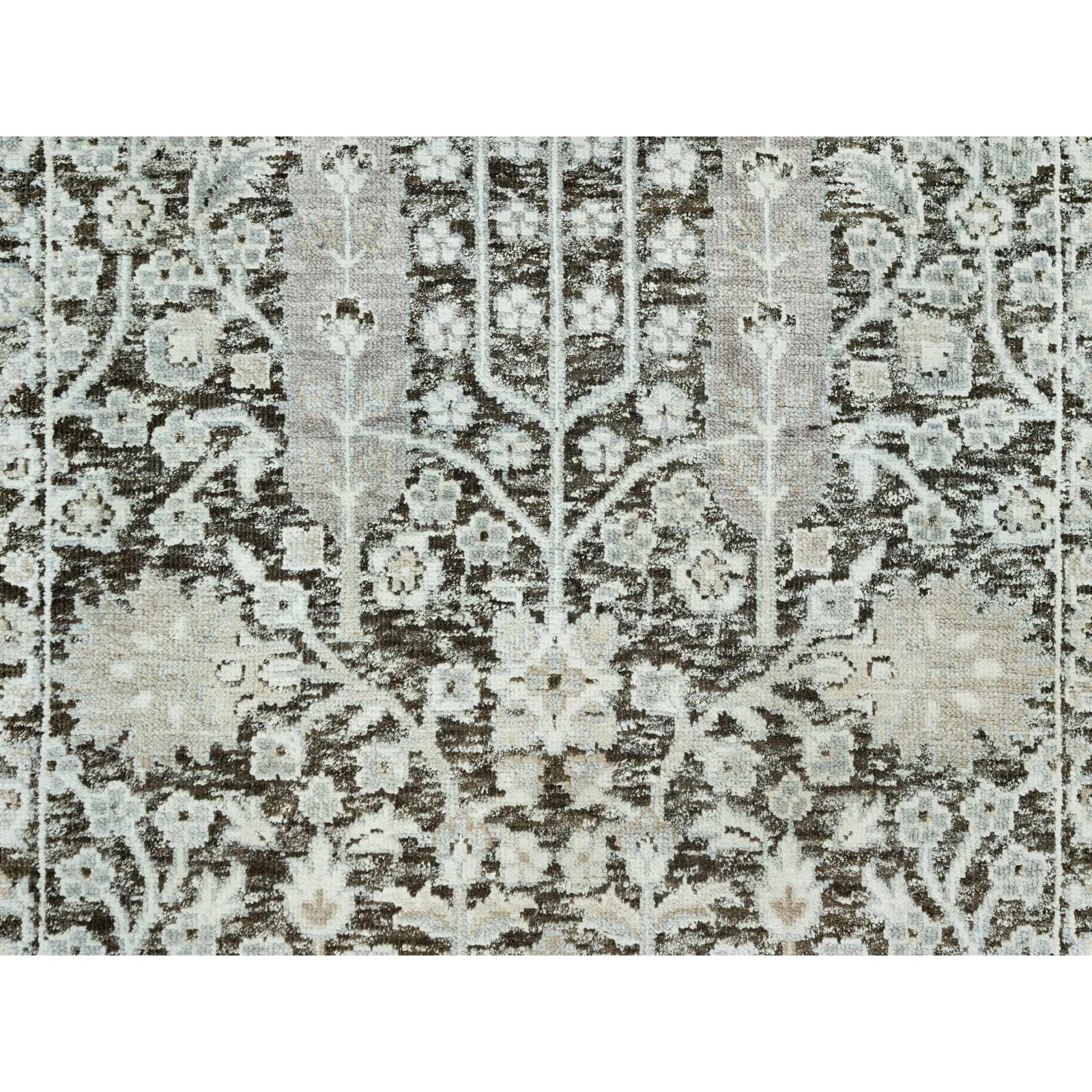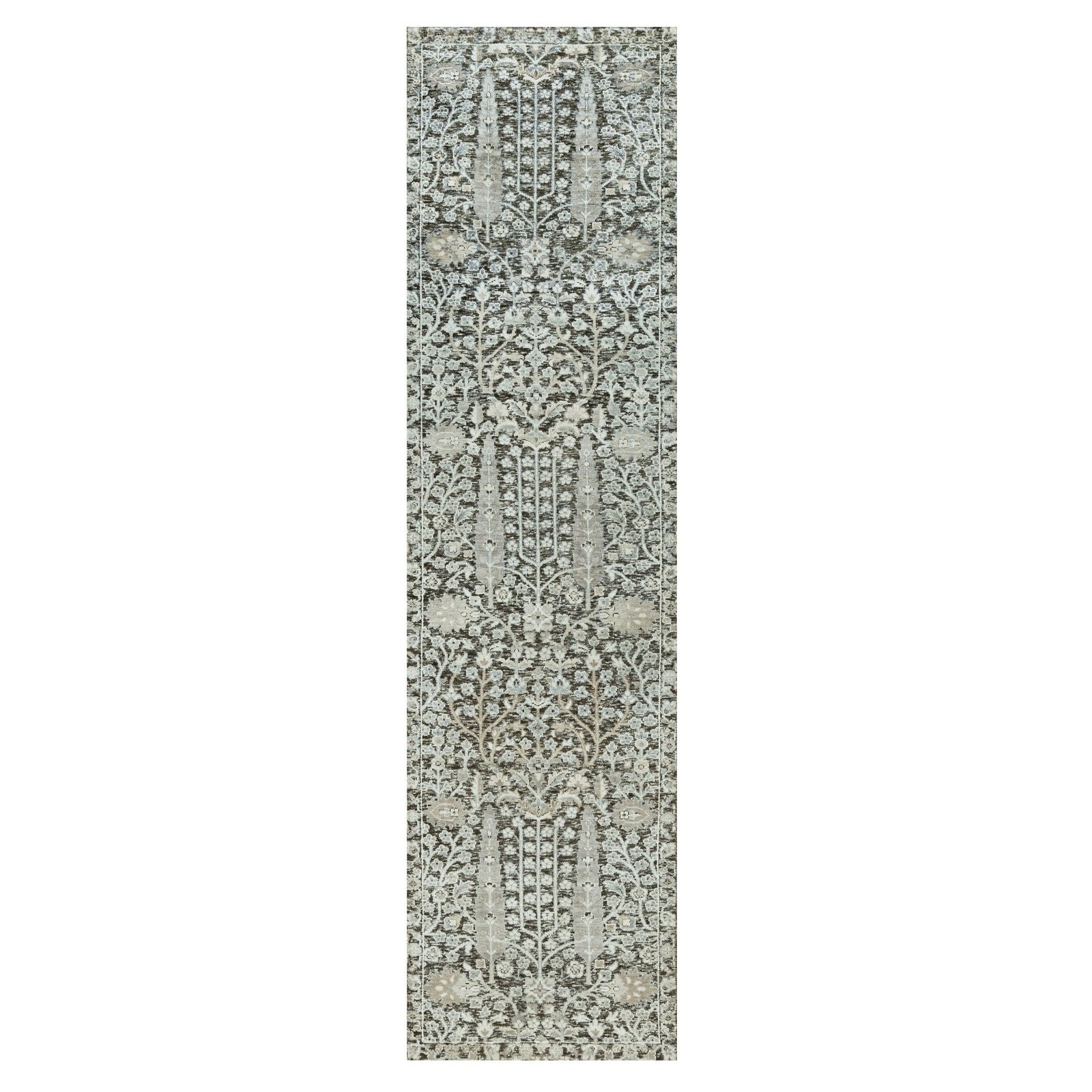 2'6"X10' Gray Hand Knotted Silk And Wool Willow And Cypress Tree Rug