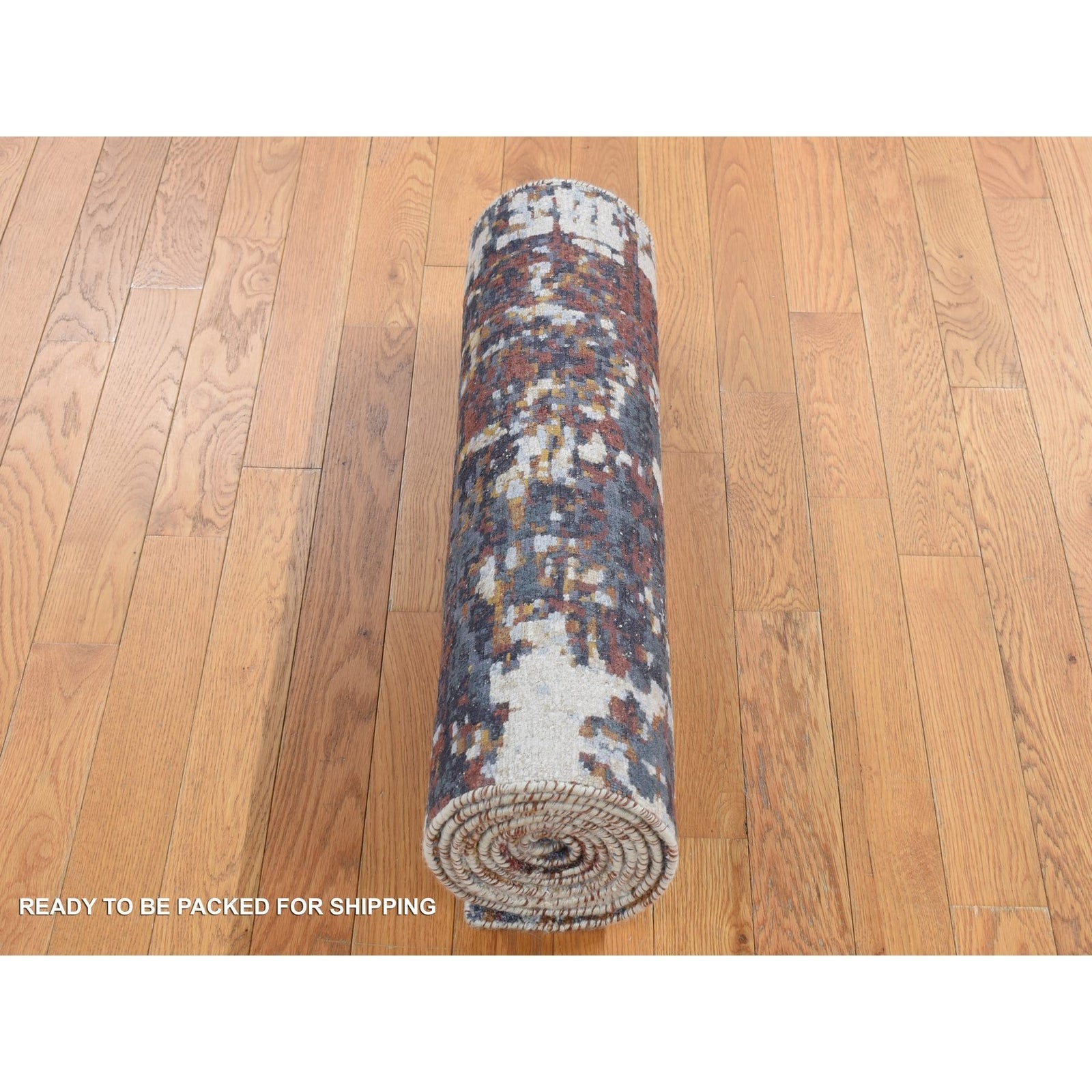 2'6"X10' Gray Modern Abstract Wool And Silk Hand Knotted Runner Rug