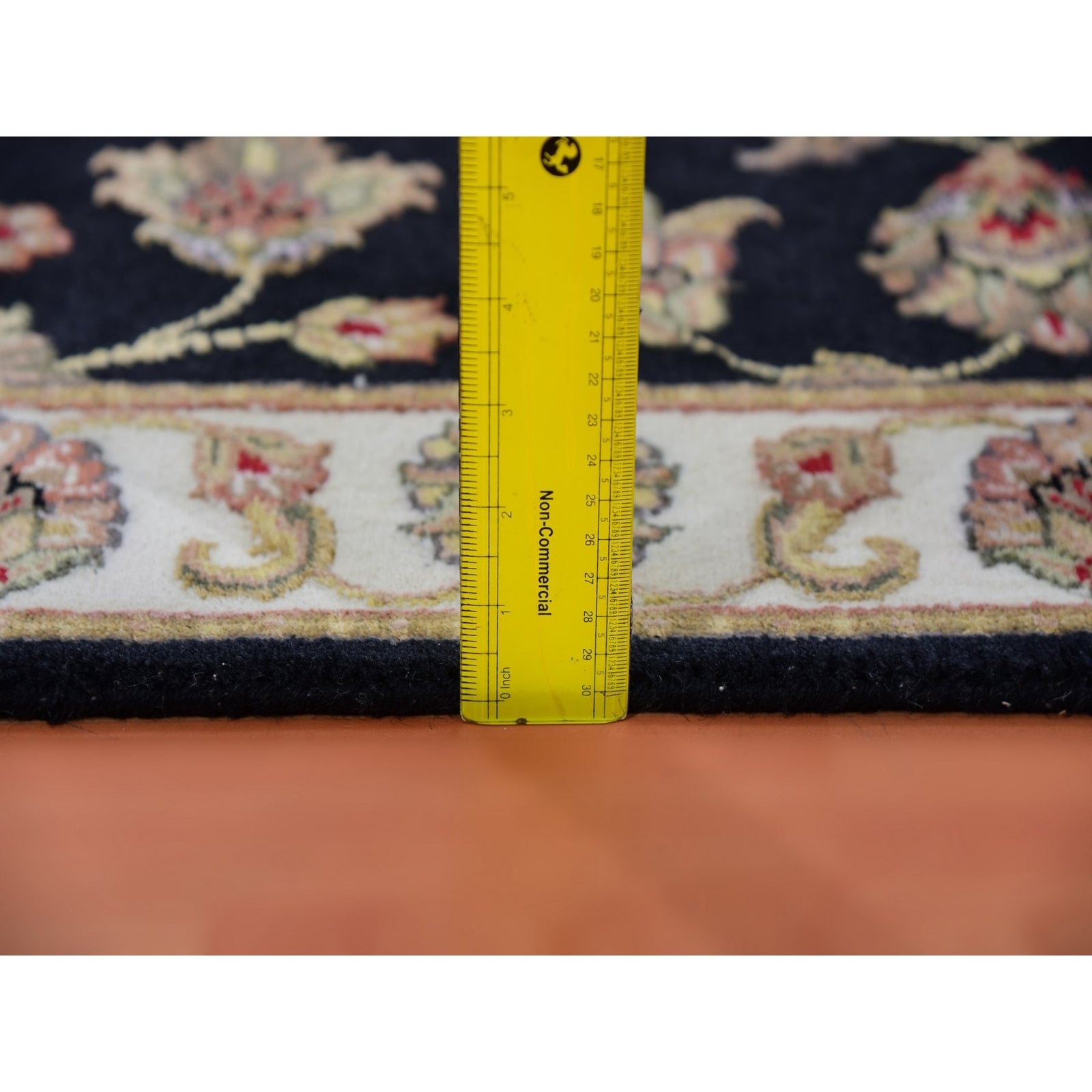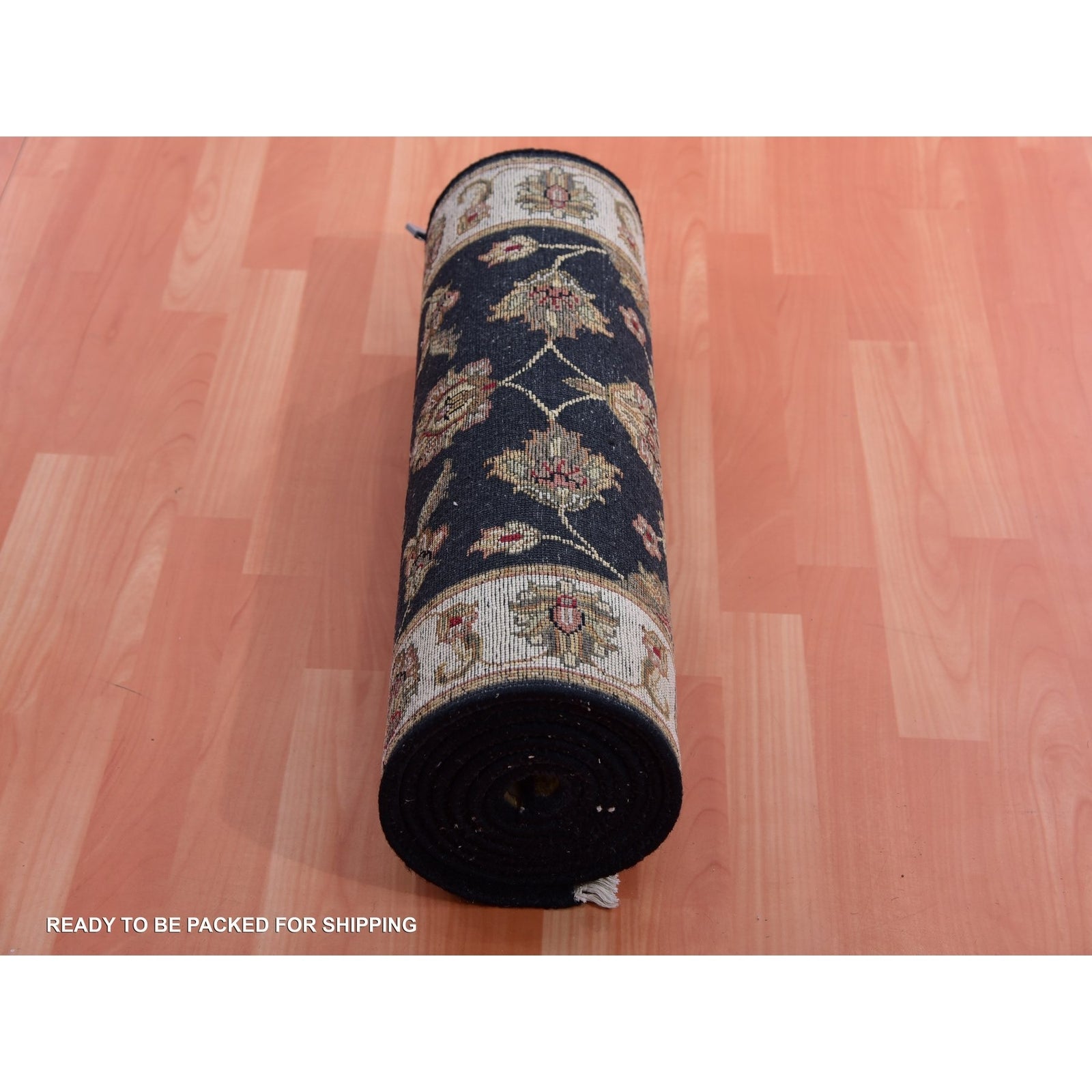 2'6"X10' Raisin Black Hand Knotted Rajasthan Design Wool Silk Runner Rug