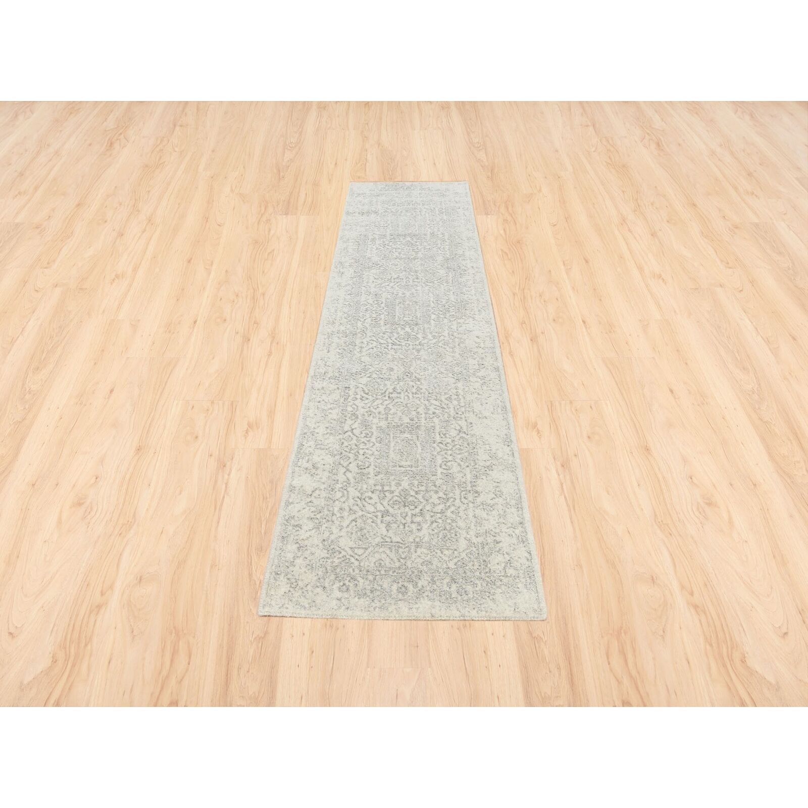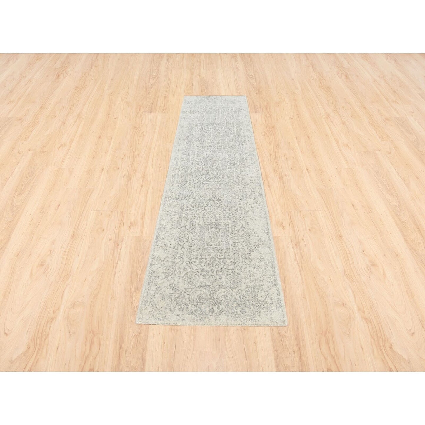 2'6"X10'1" Beige Hand Loomed Wool, Plant Based Silk Oriental Runner Rug