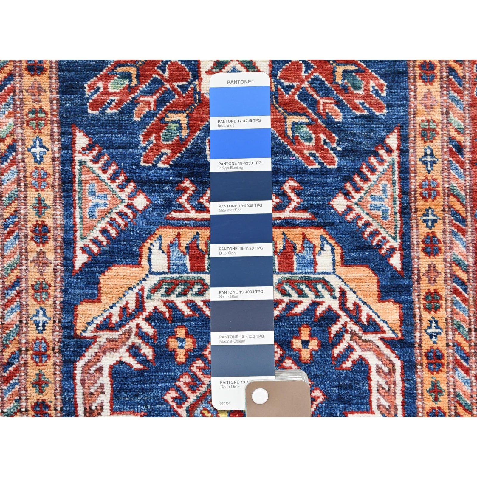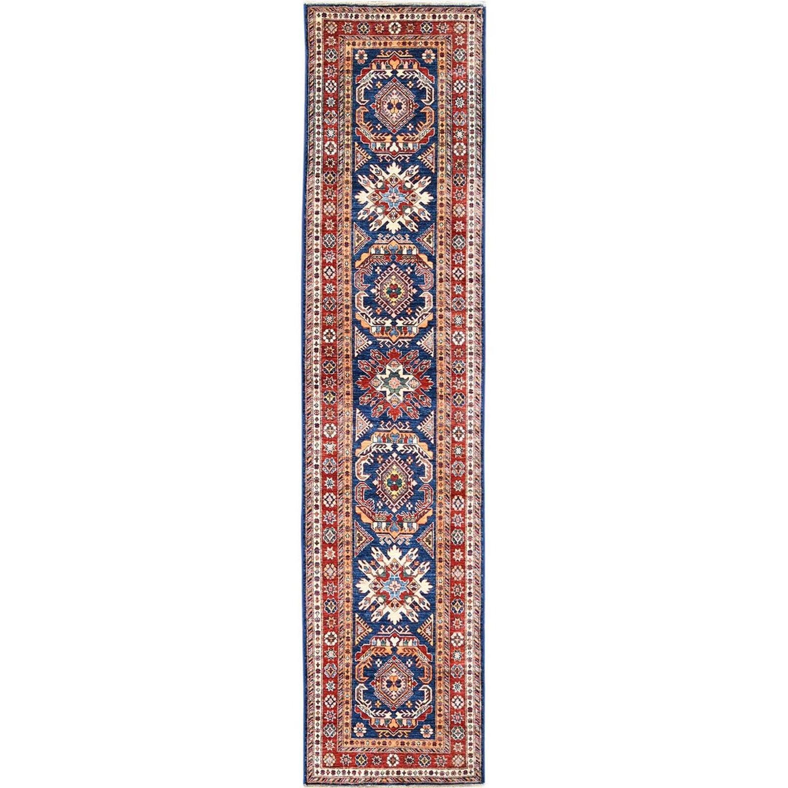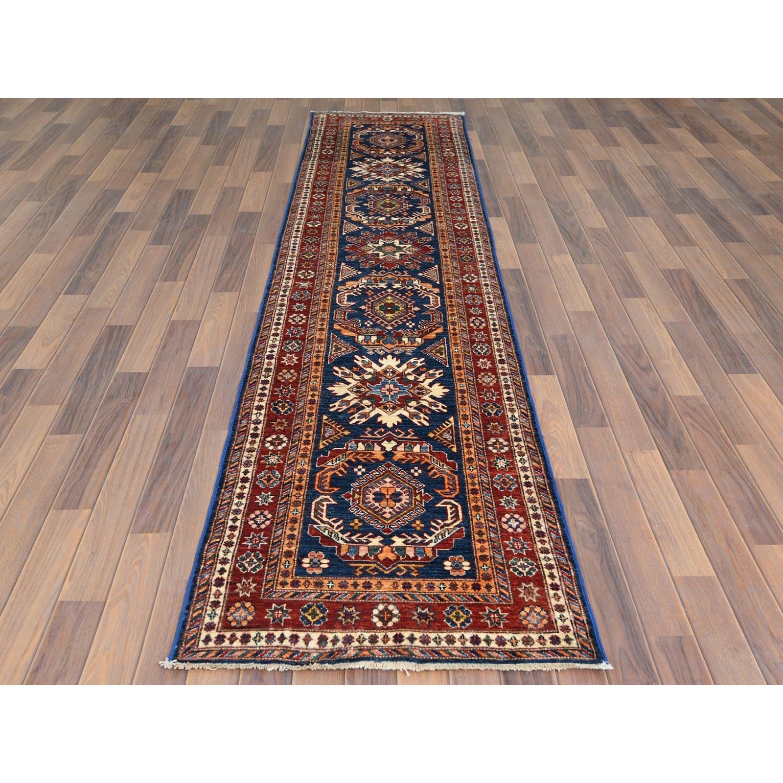 2'6"X11' Hand Knotted Navy Blue Afghan Super Kazak Soft Wool Runner Rug