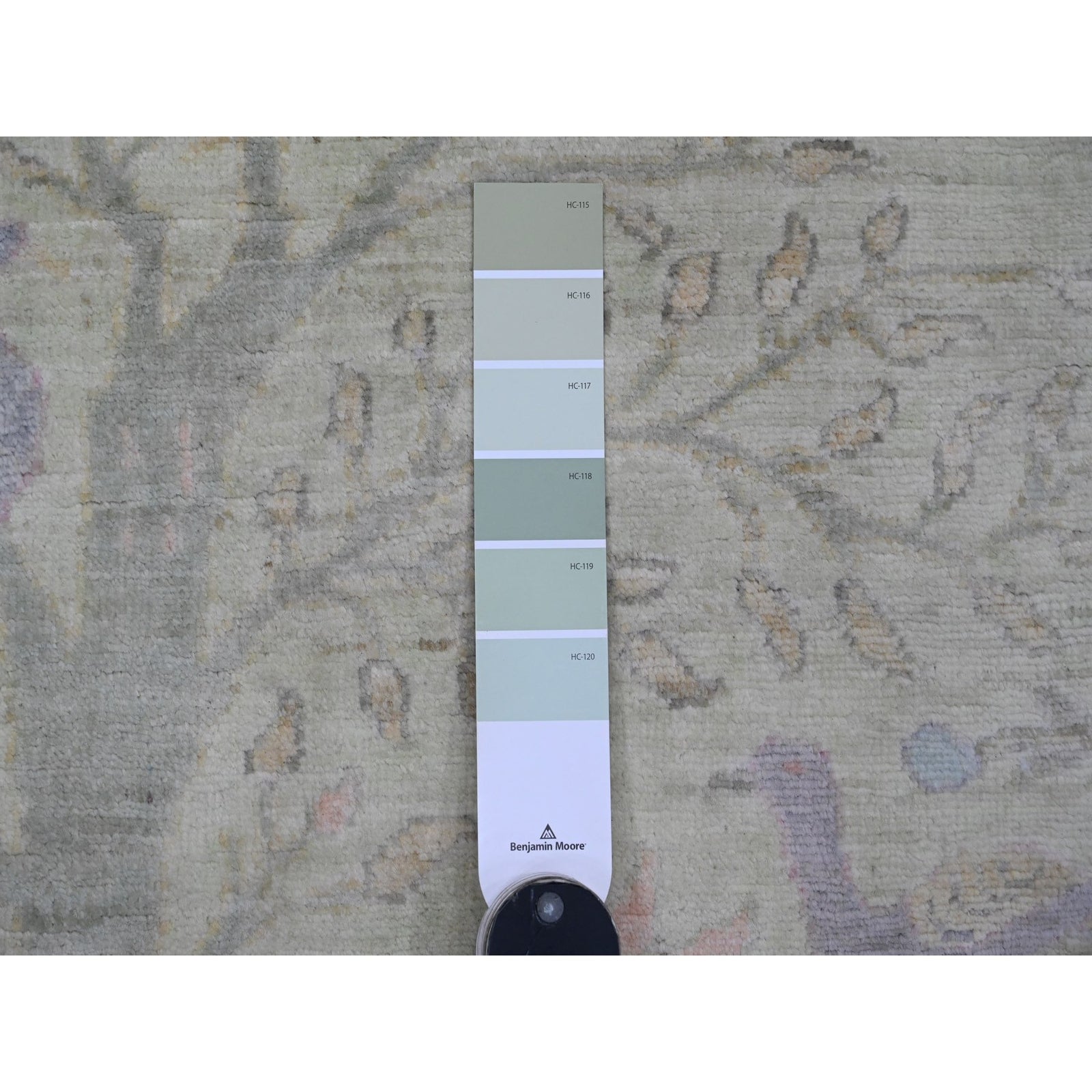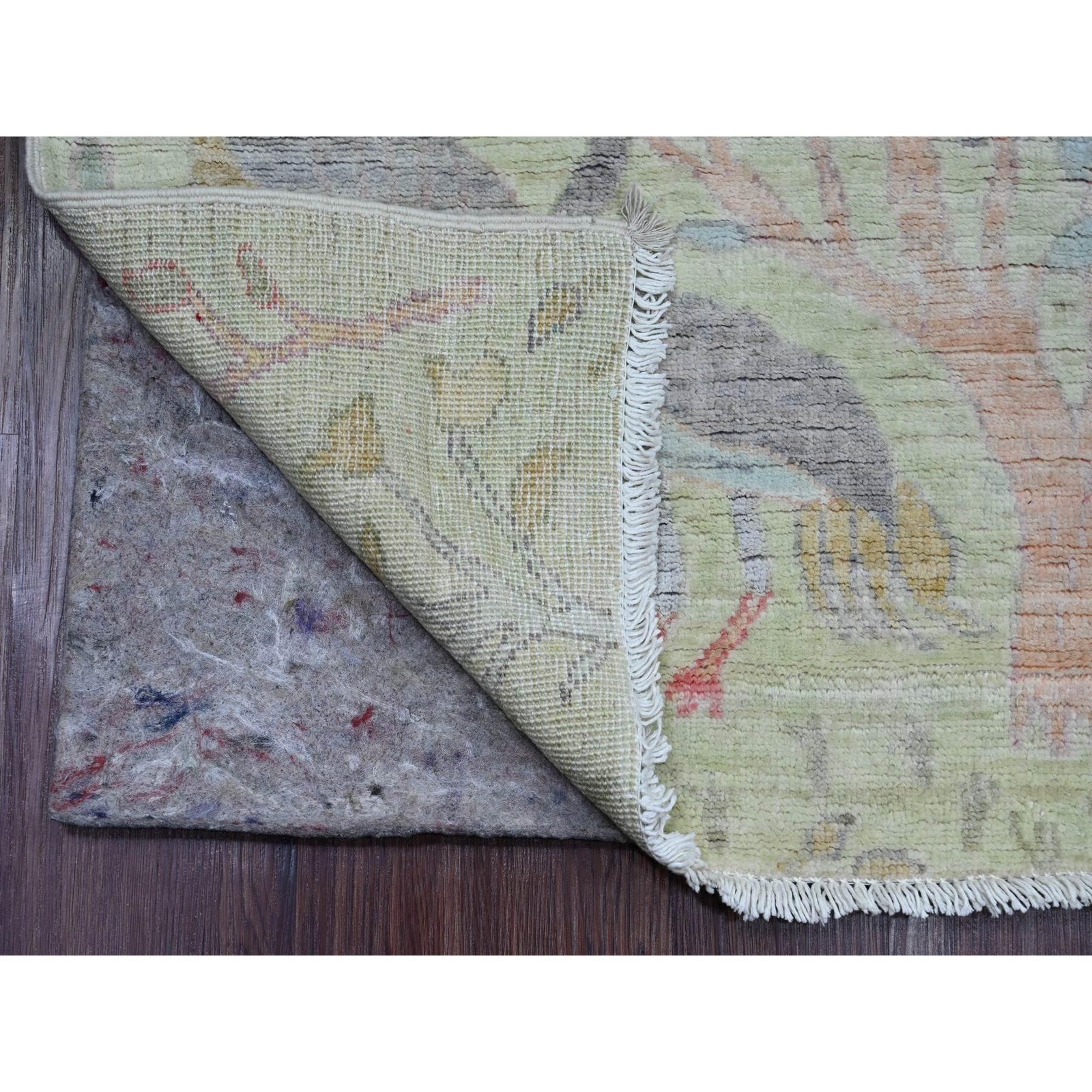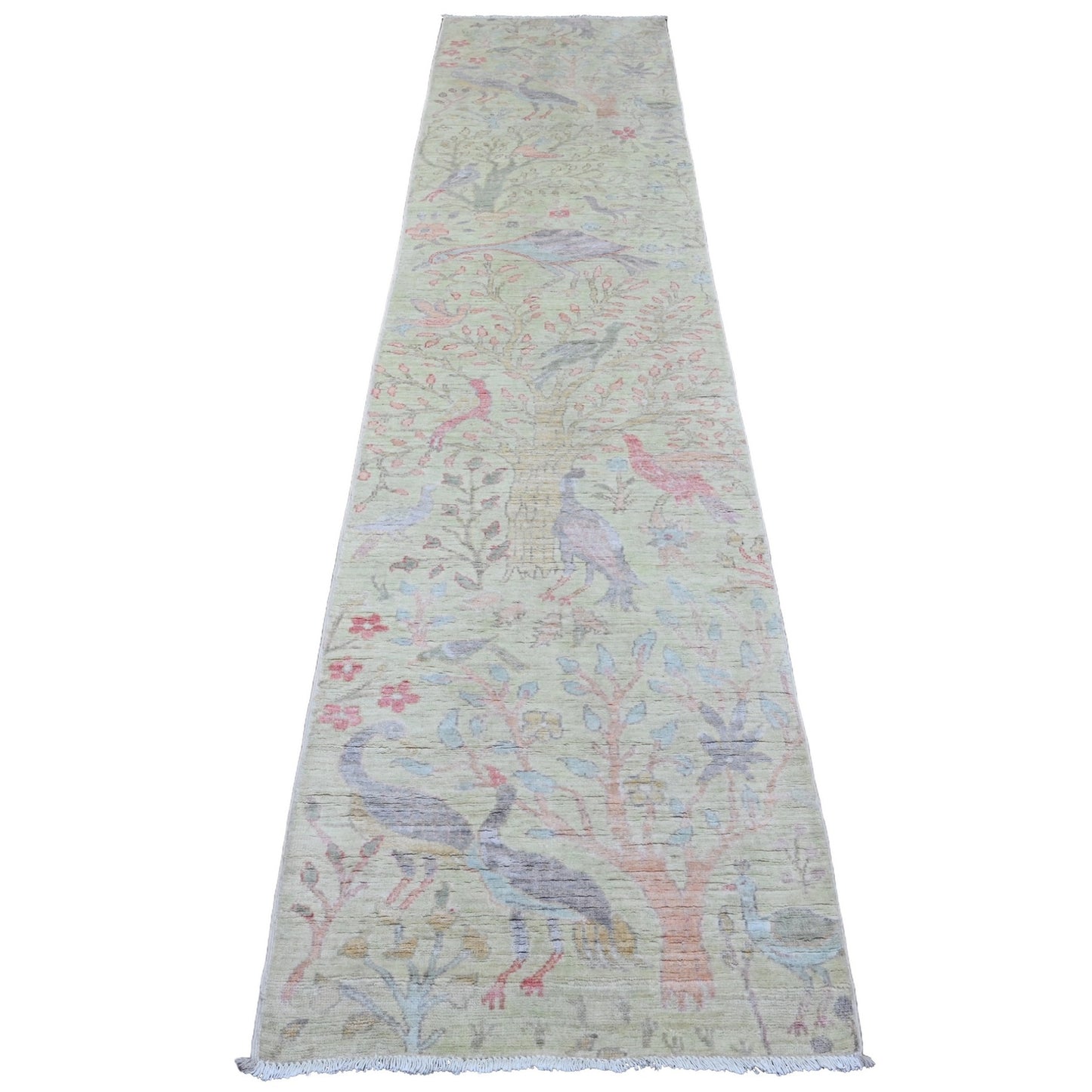 2'6"X11'4" Green Peshawar Birds Design Hand Knotted Soft Wool Runner Rug