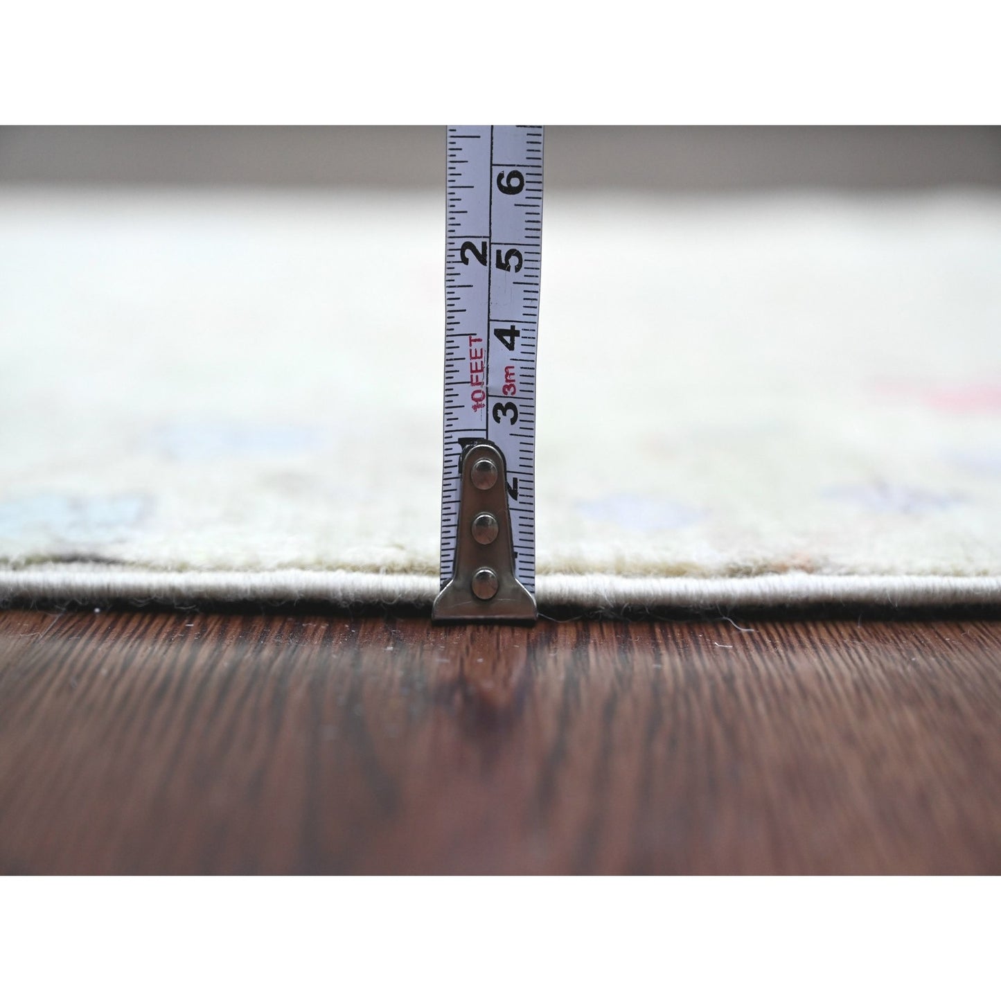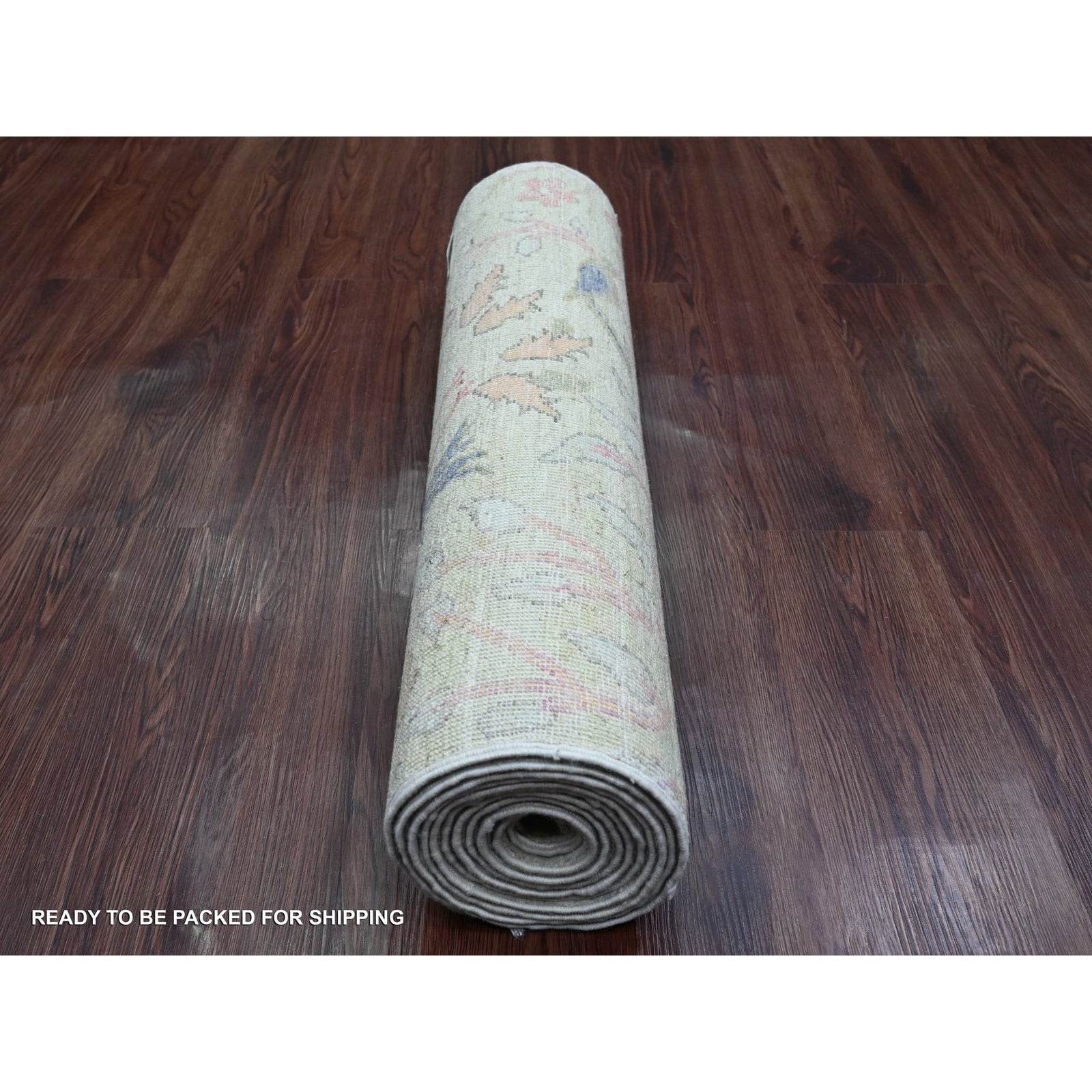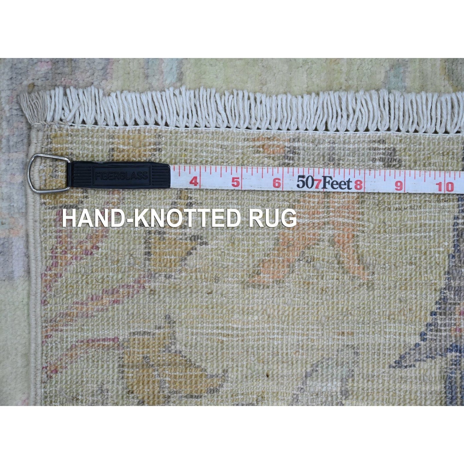 2'6"X11'4" Green Peshawar Birds Design Hand Knotted Soft Wool Runner Rug
