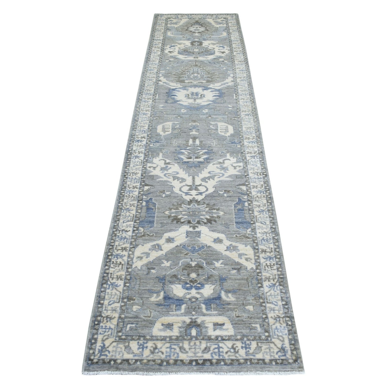 2'6"X11'6" Extra Soft Wool Hand Knotted Gray Afghan Peshawar Runner Rug