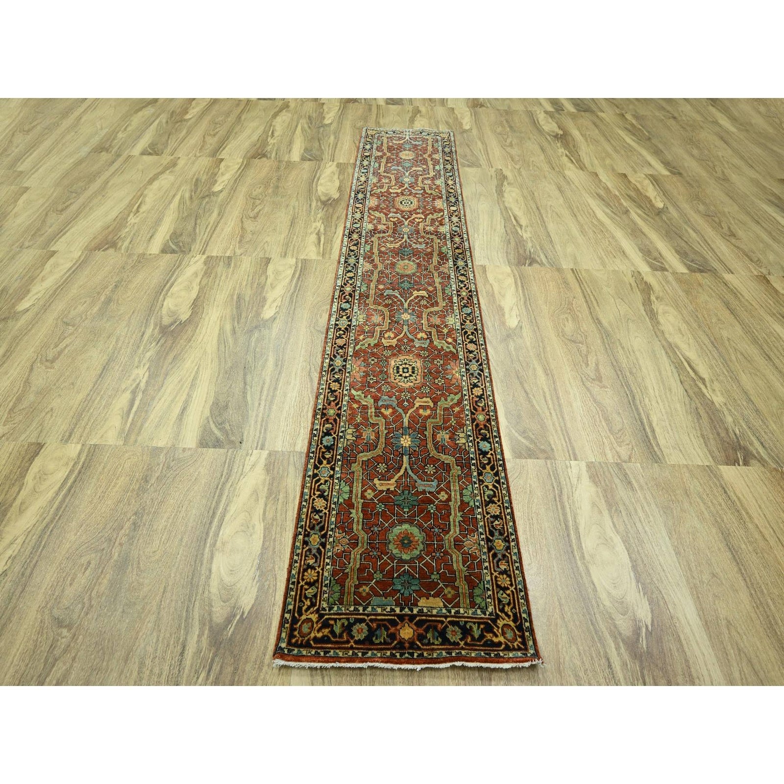 2'6"X12' Brick Red Heris All Over Design Hand Knotted All Wool Runner Rug