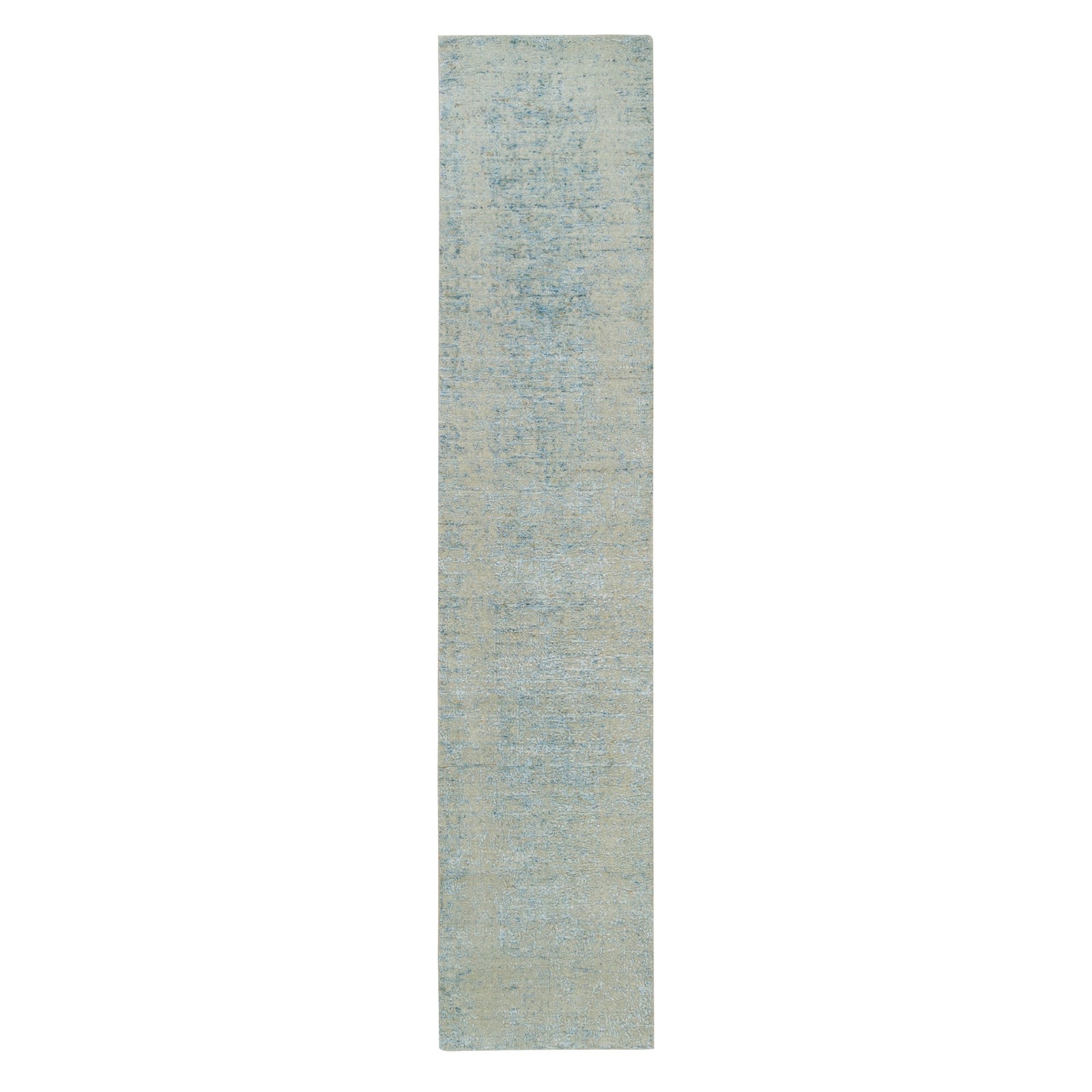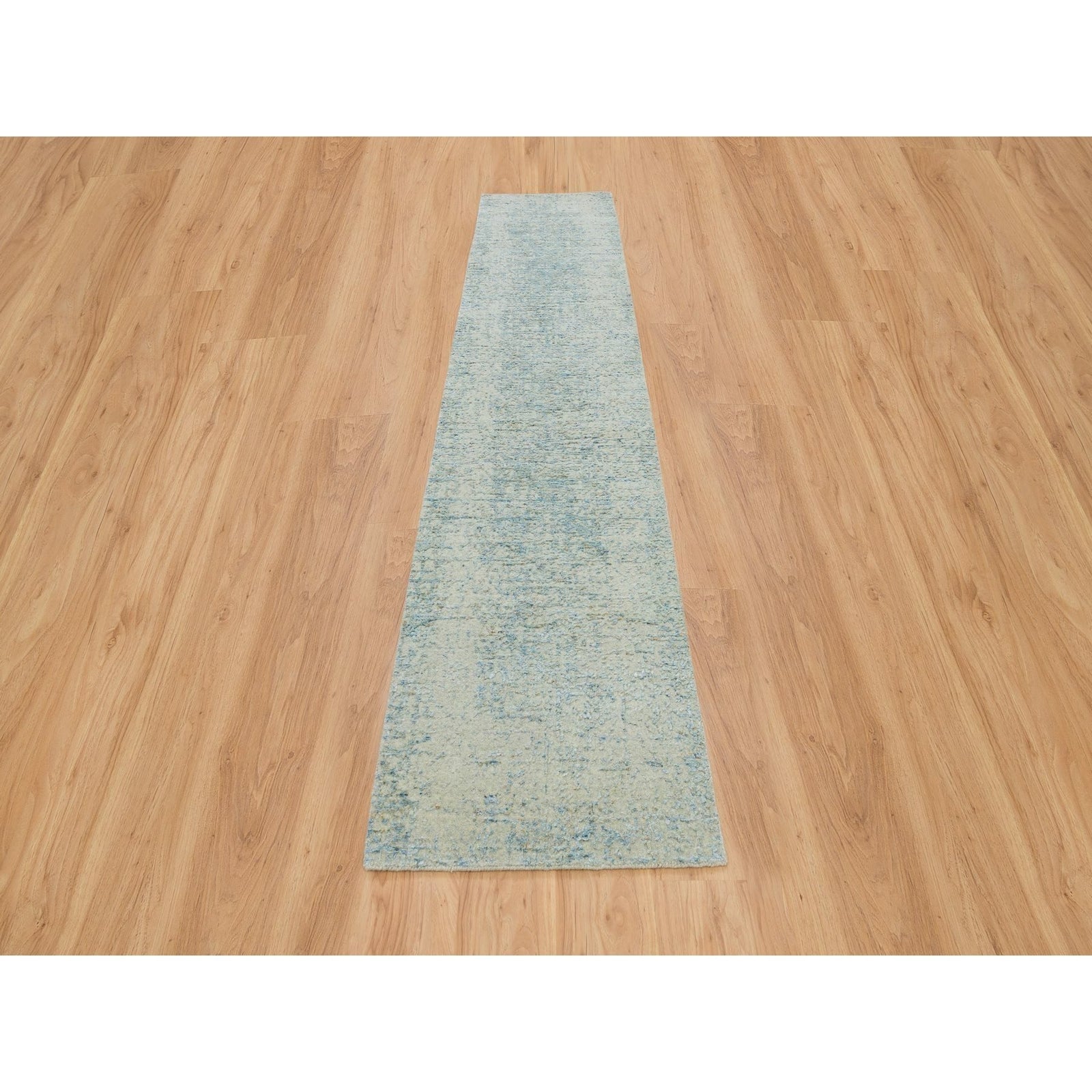 2'6"X12' Gray Modern Jacquard Hand Loomed Wool And Silk Runner Rug