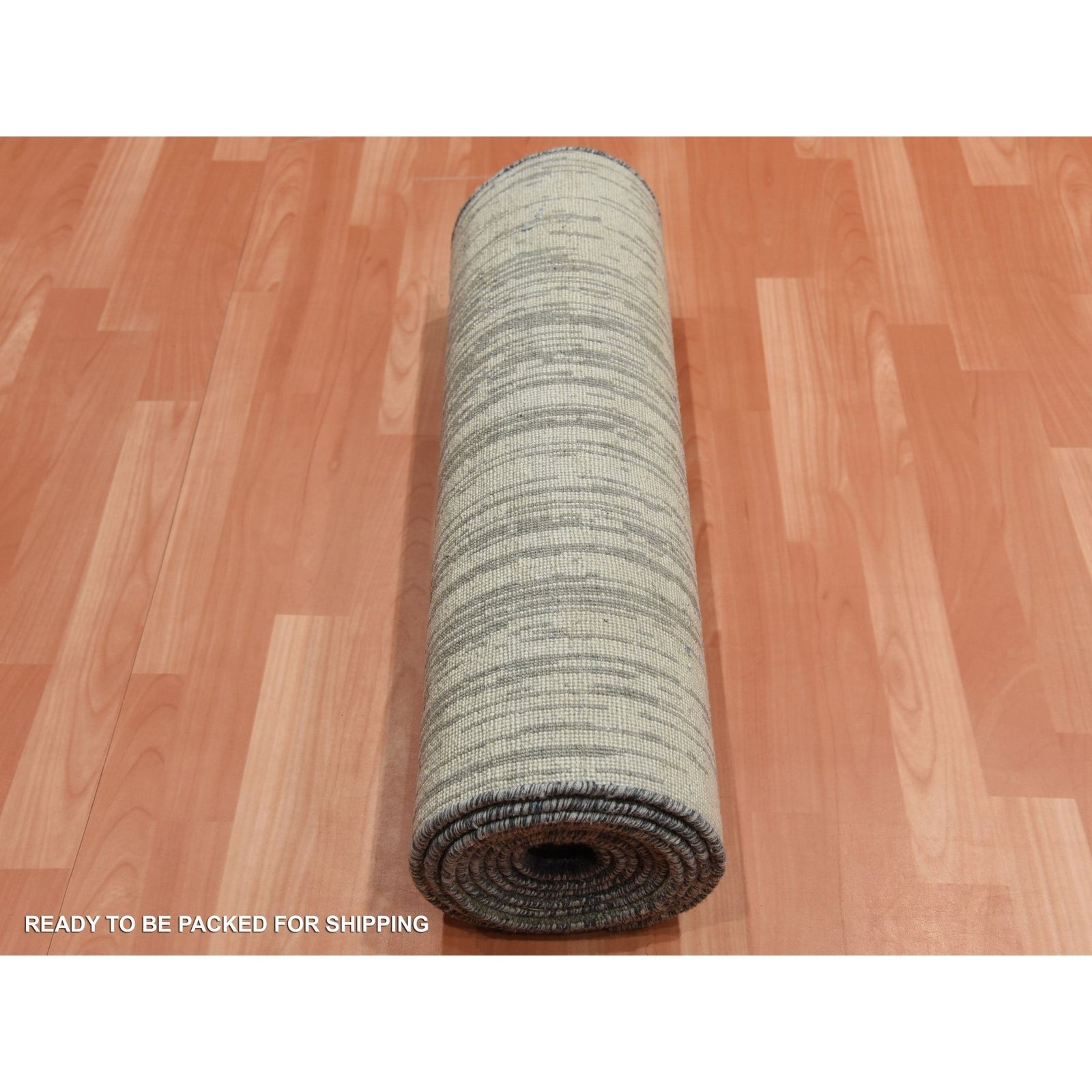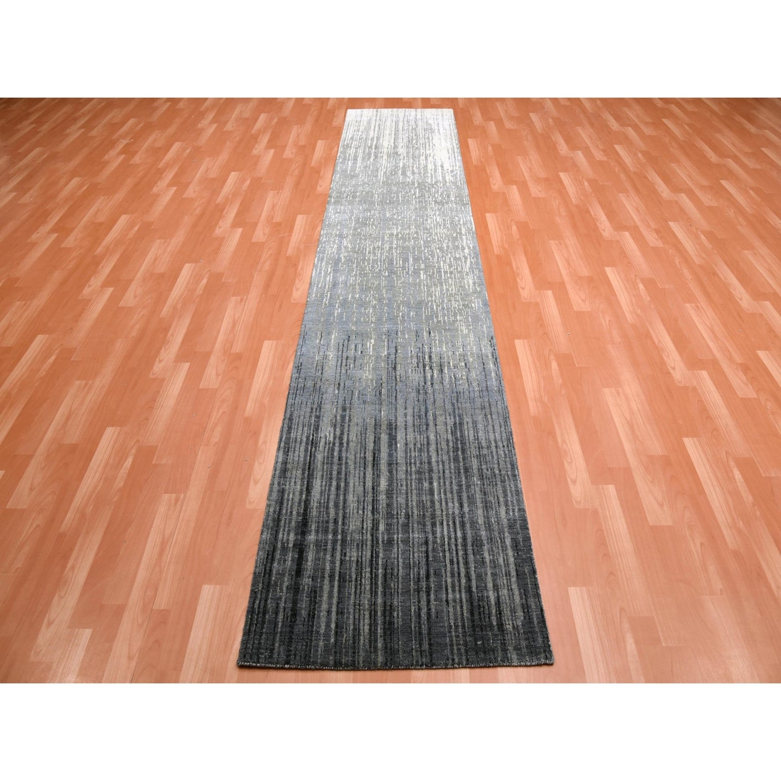 2'6"X12'6" Gray Modern Ombre Design Hand Knotted Soft Wool Runner Rug