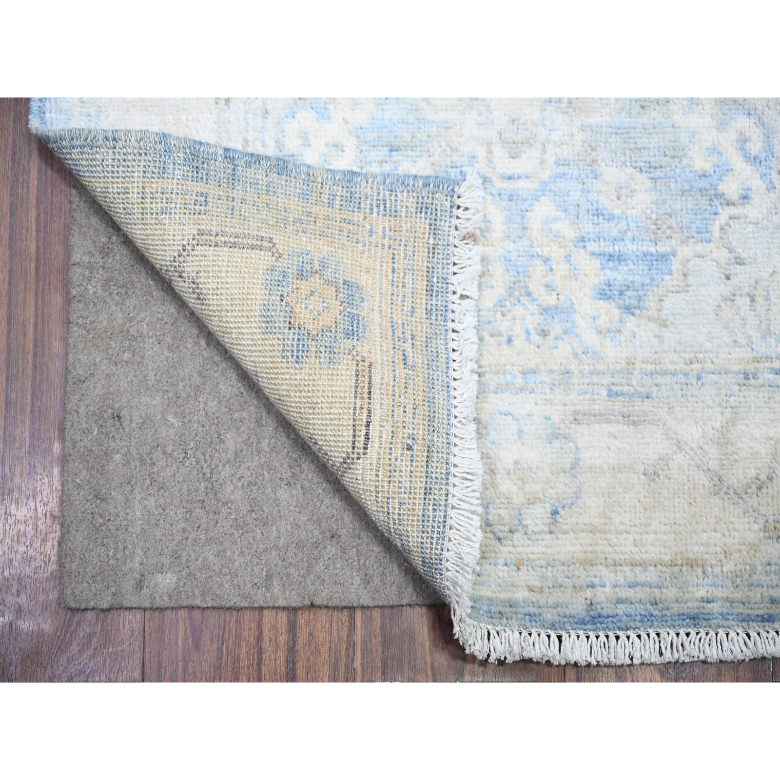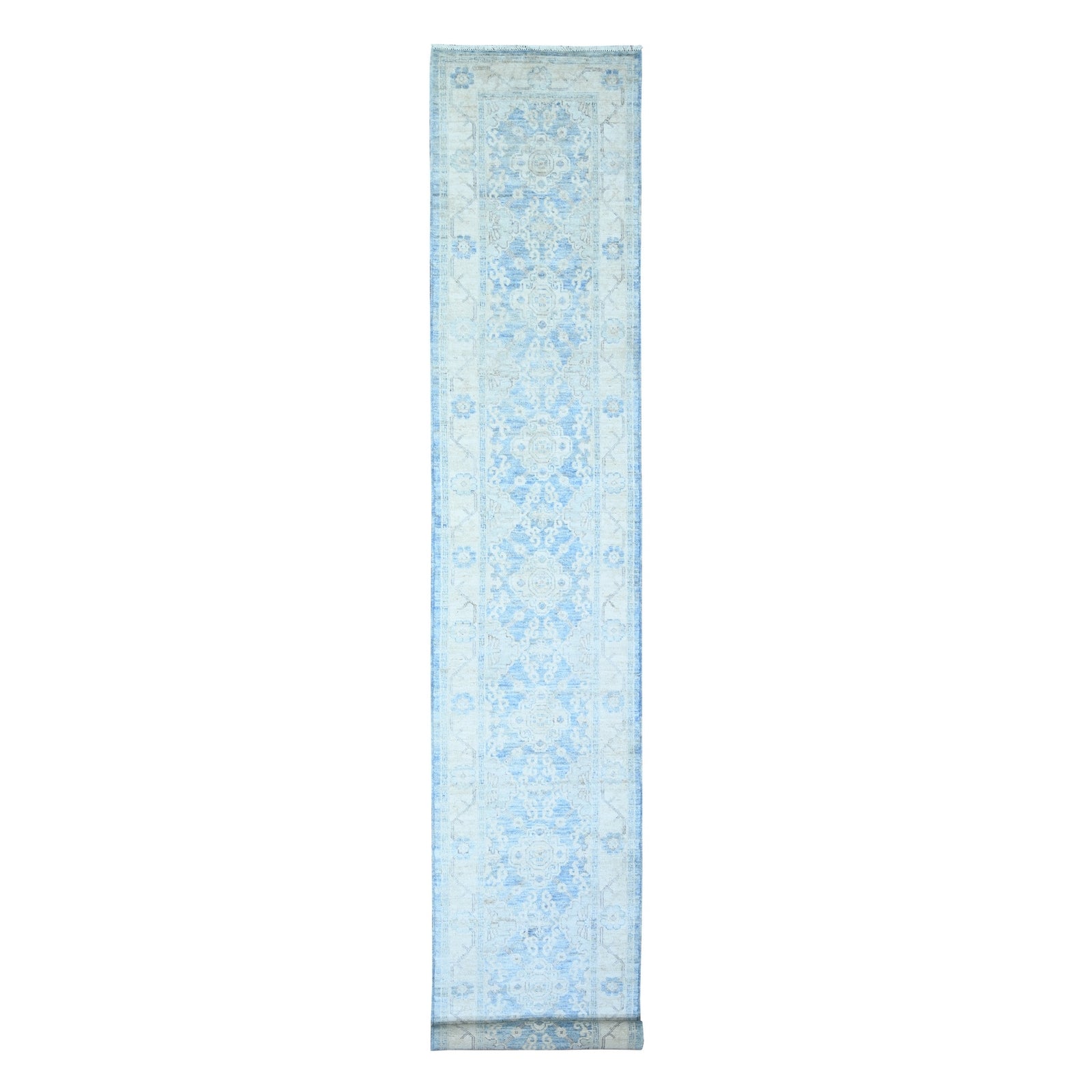2'6"X16'2" Blue Wool Peshawar Faded Design Hand Knotted Xl Runner Rug