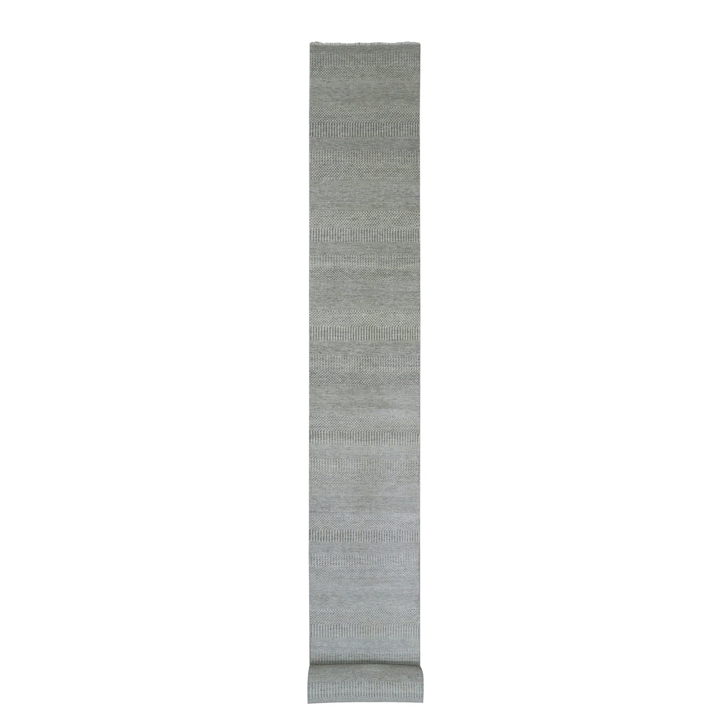 2'6"X21'8" Castor Gray Undyed Wool Grass Hand Knotted Xl Runner Rug