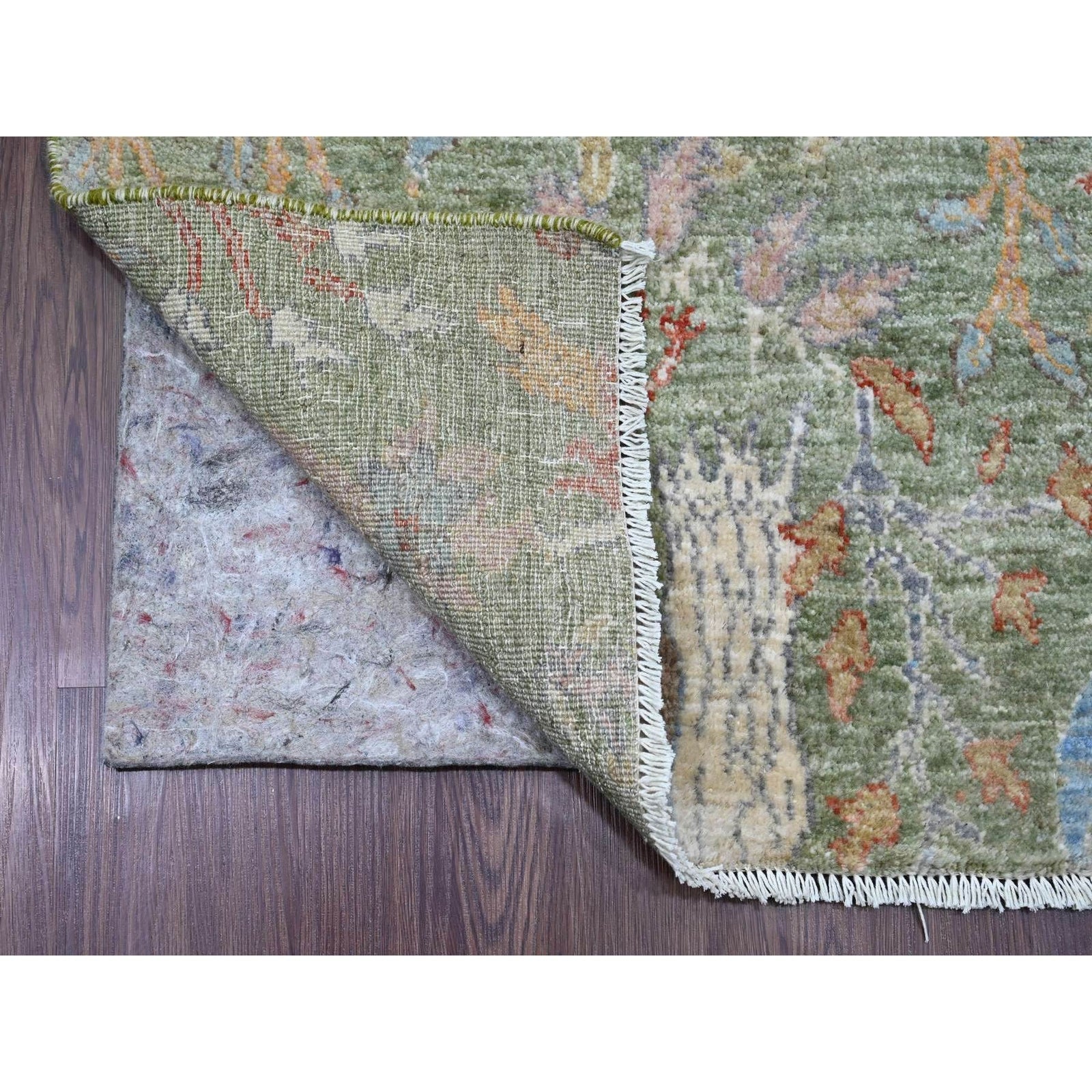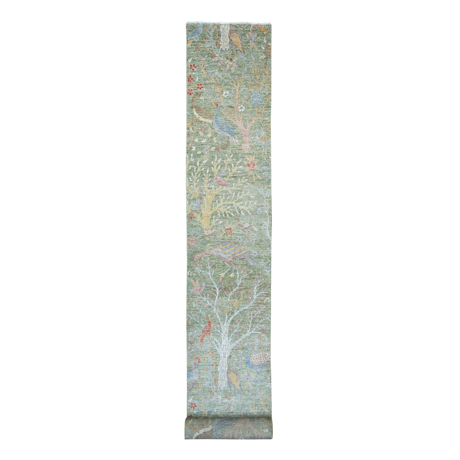 2'6"X24' Green Birds Of Paradise Design Wool Hand Knotted Xl Runner Rug