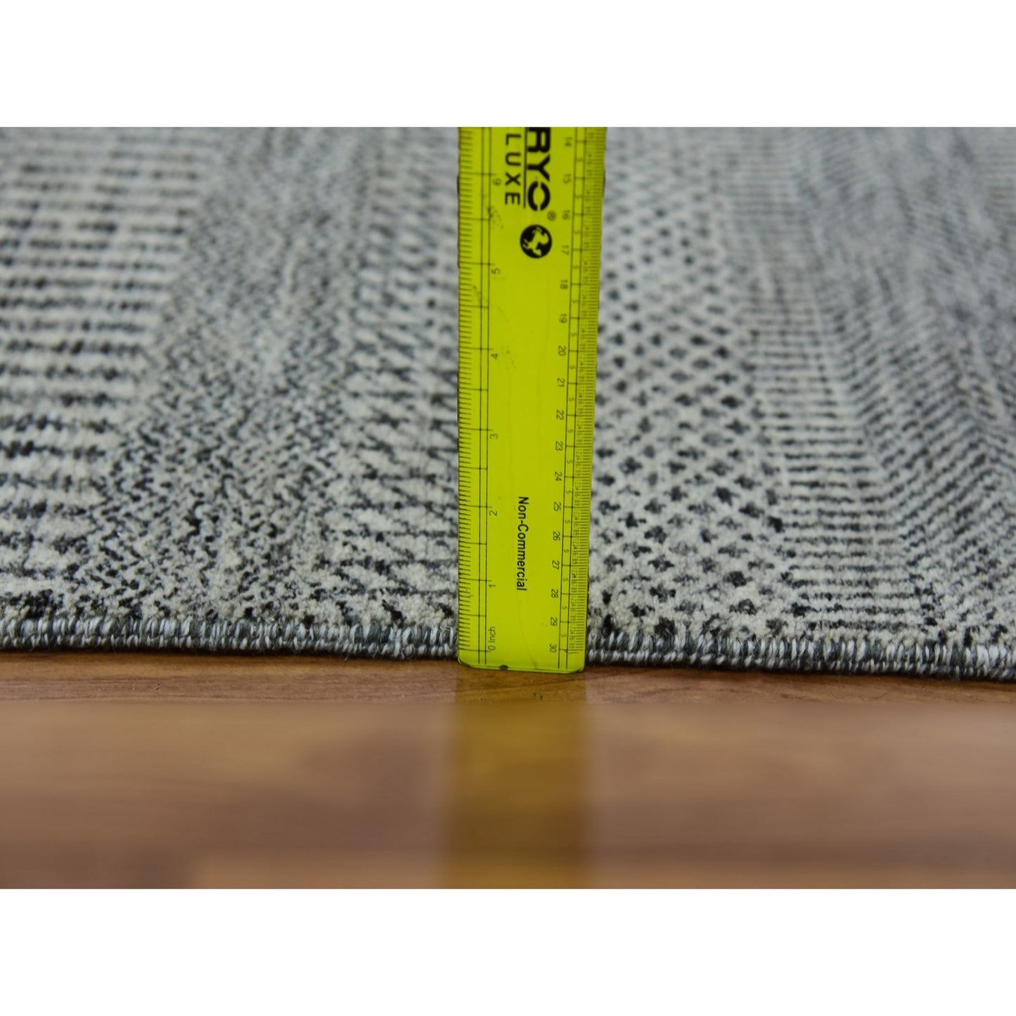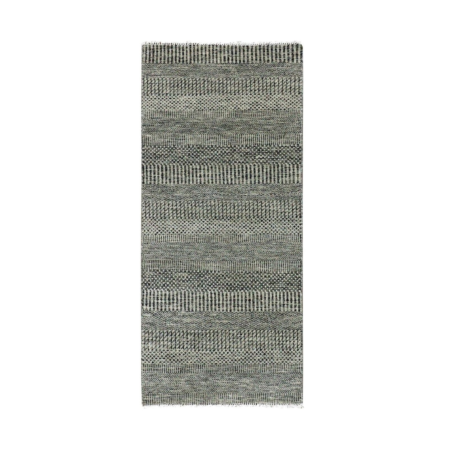 2'6"X5'10" Frost Gray Undyed Wool Grass Design Hand Knotted Runner Rug
