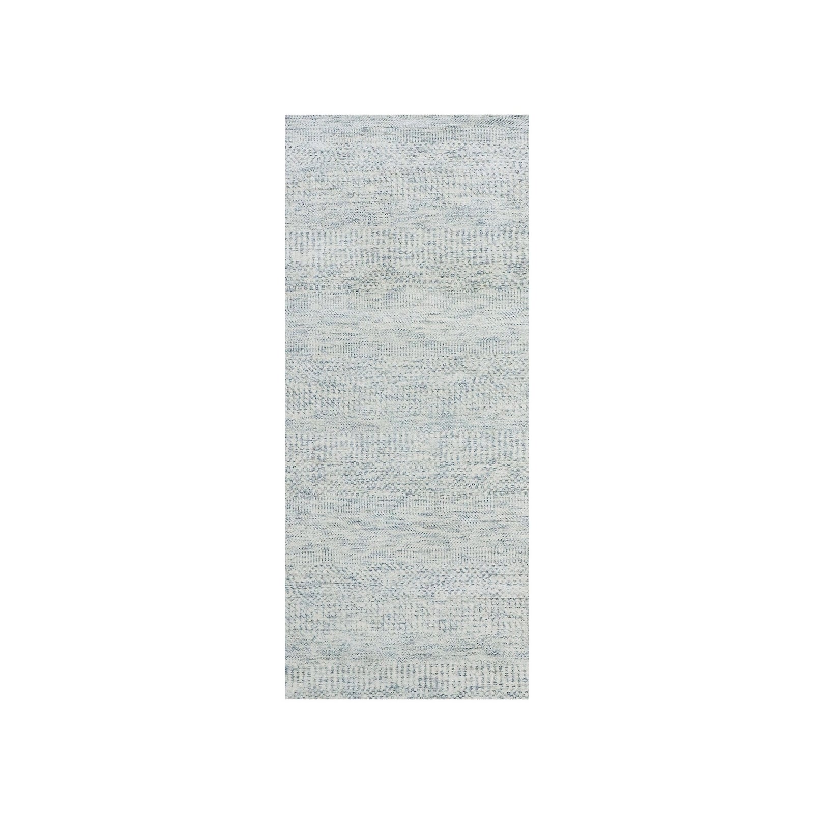 2'6"X6' Gray Hand Knotted Grass Design Modern Undyed Wool Runner Rug