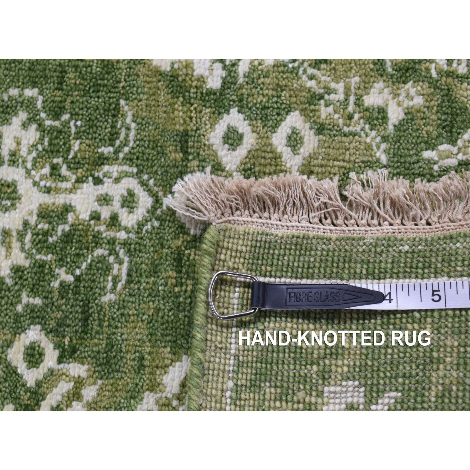 2'6"X6' Green Tebraz Design Wool And Silk Hand Knotted Runner Rug