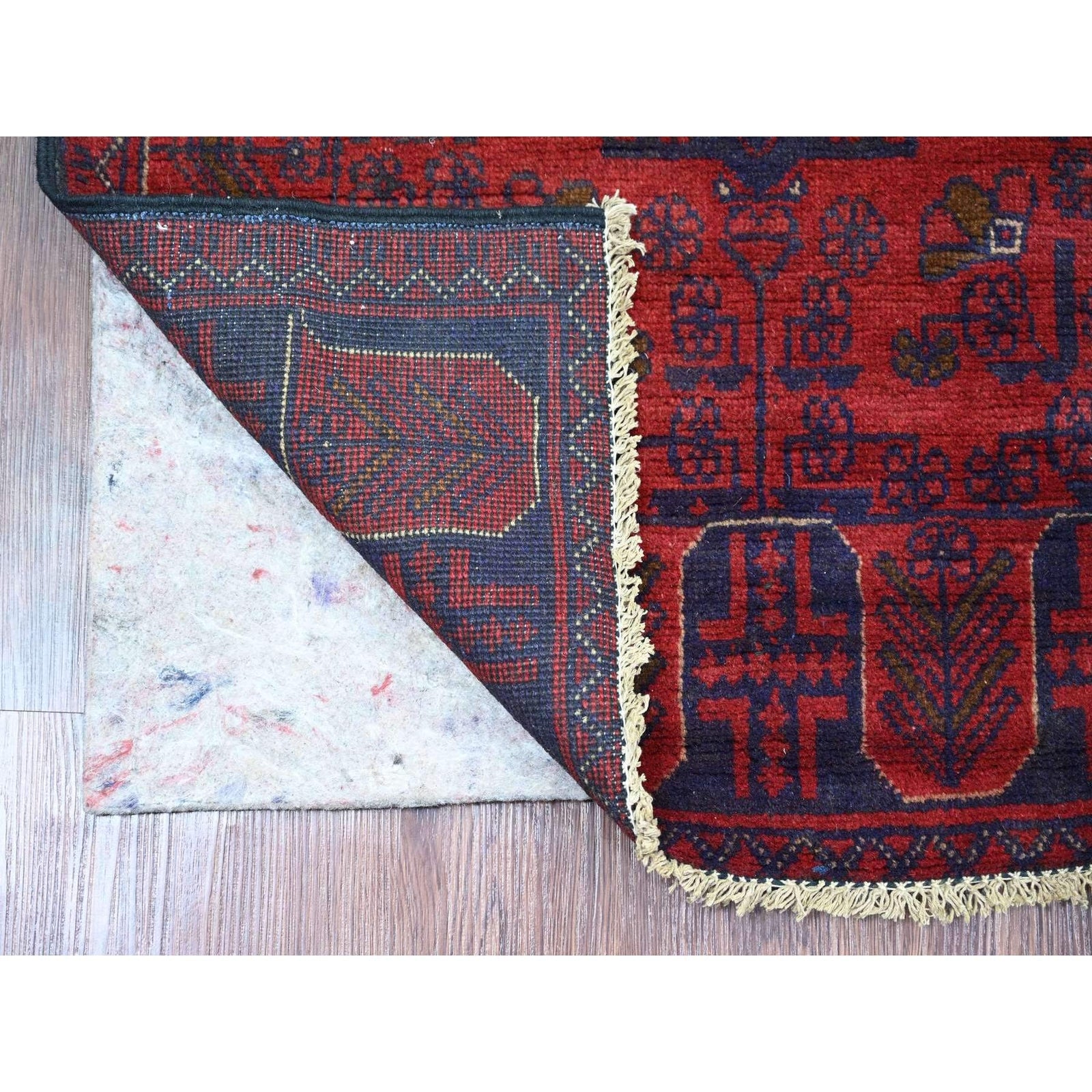 2'6"X6'1" Red Andkhoy Geometric Design Soft Wool Hand Knotted Runner Rug
