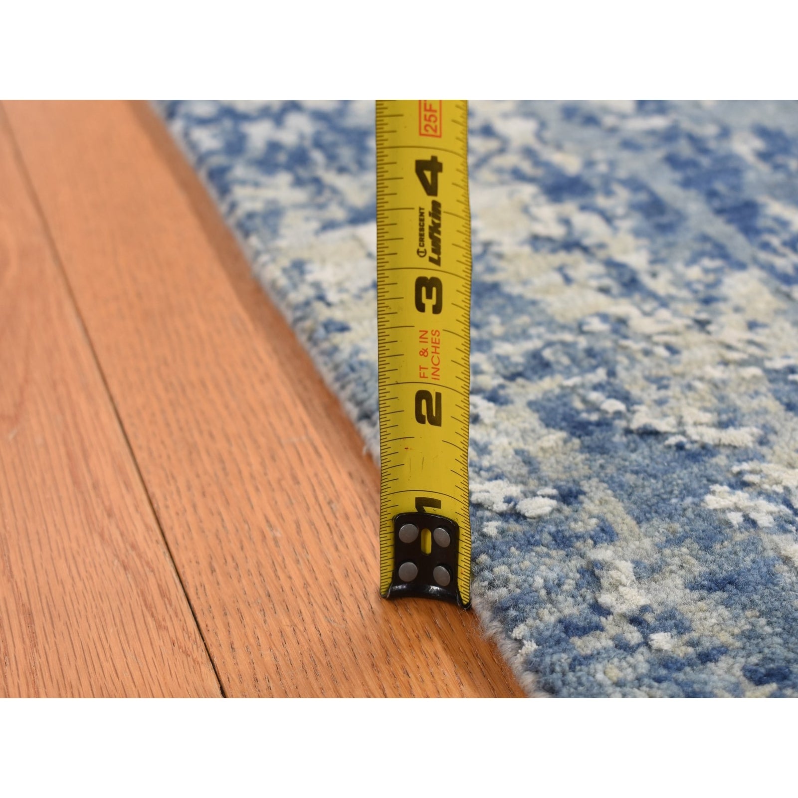 2'6"X8'1" Blue Abstract Design Wool And Silk Hand Knotted Runner Rug