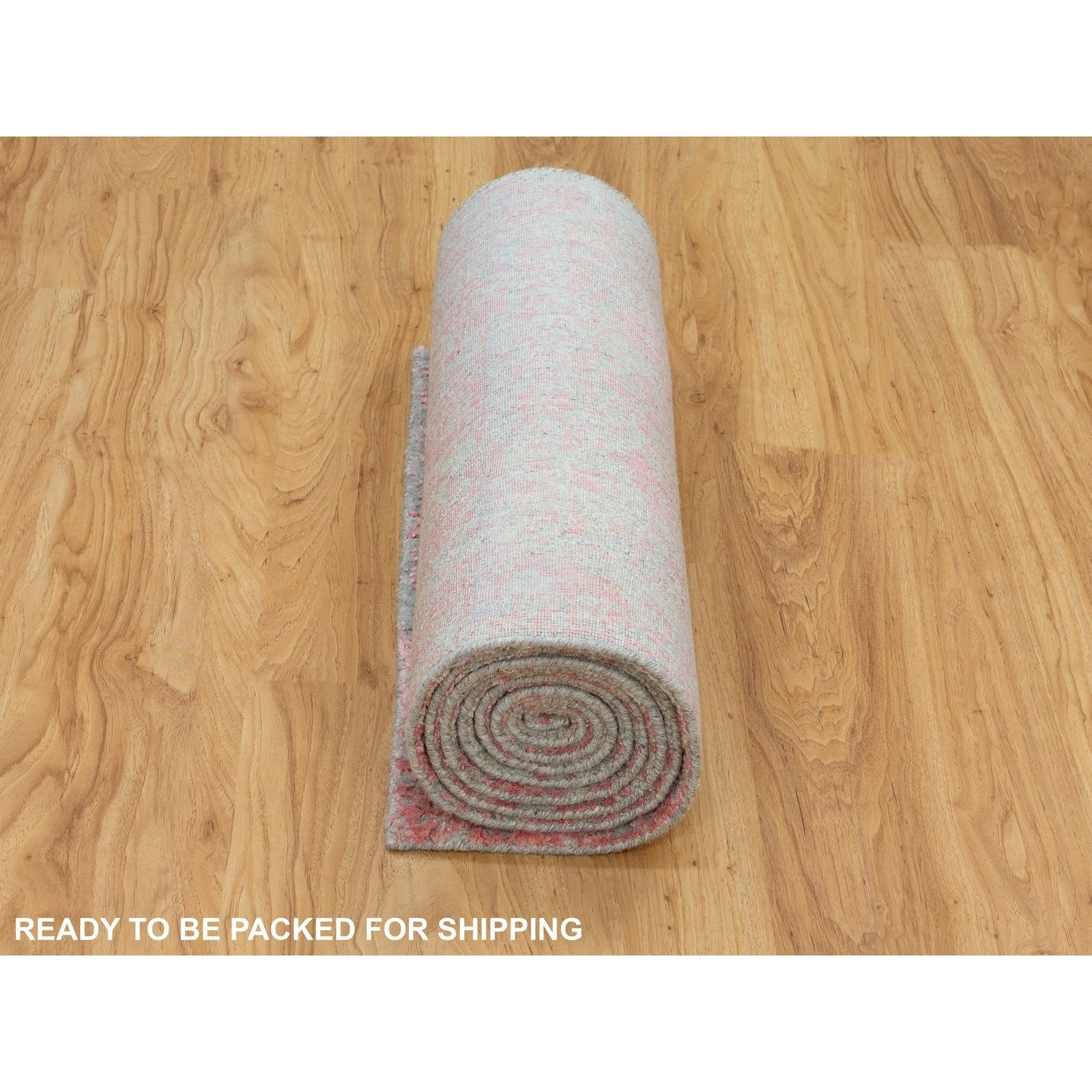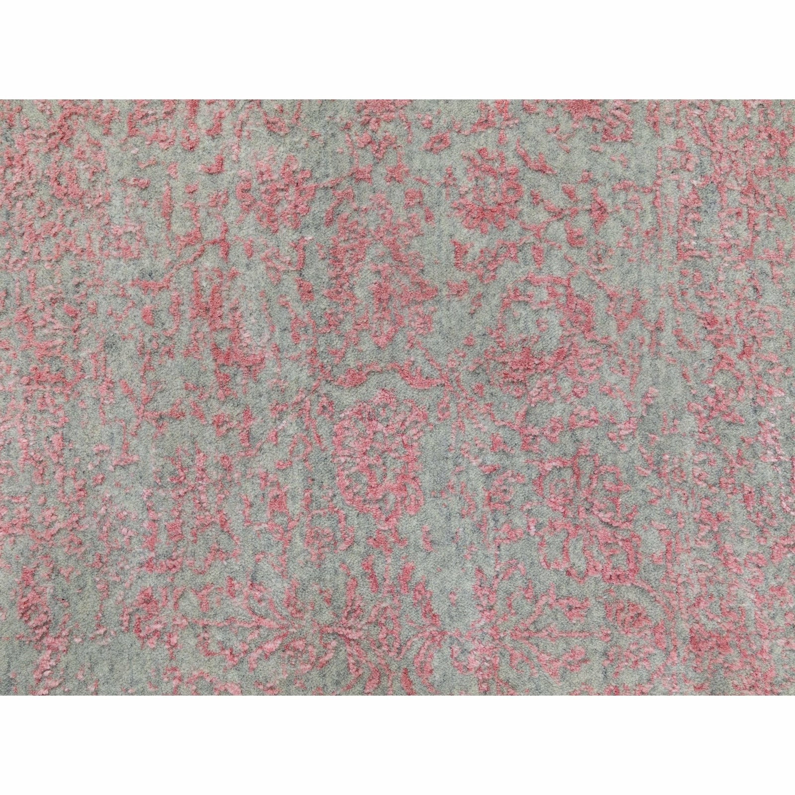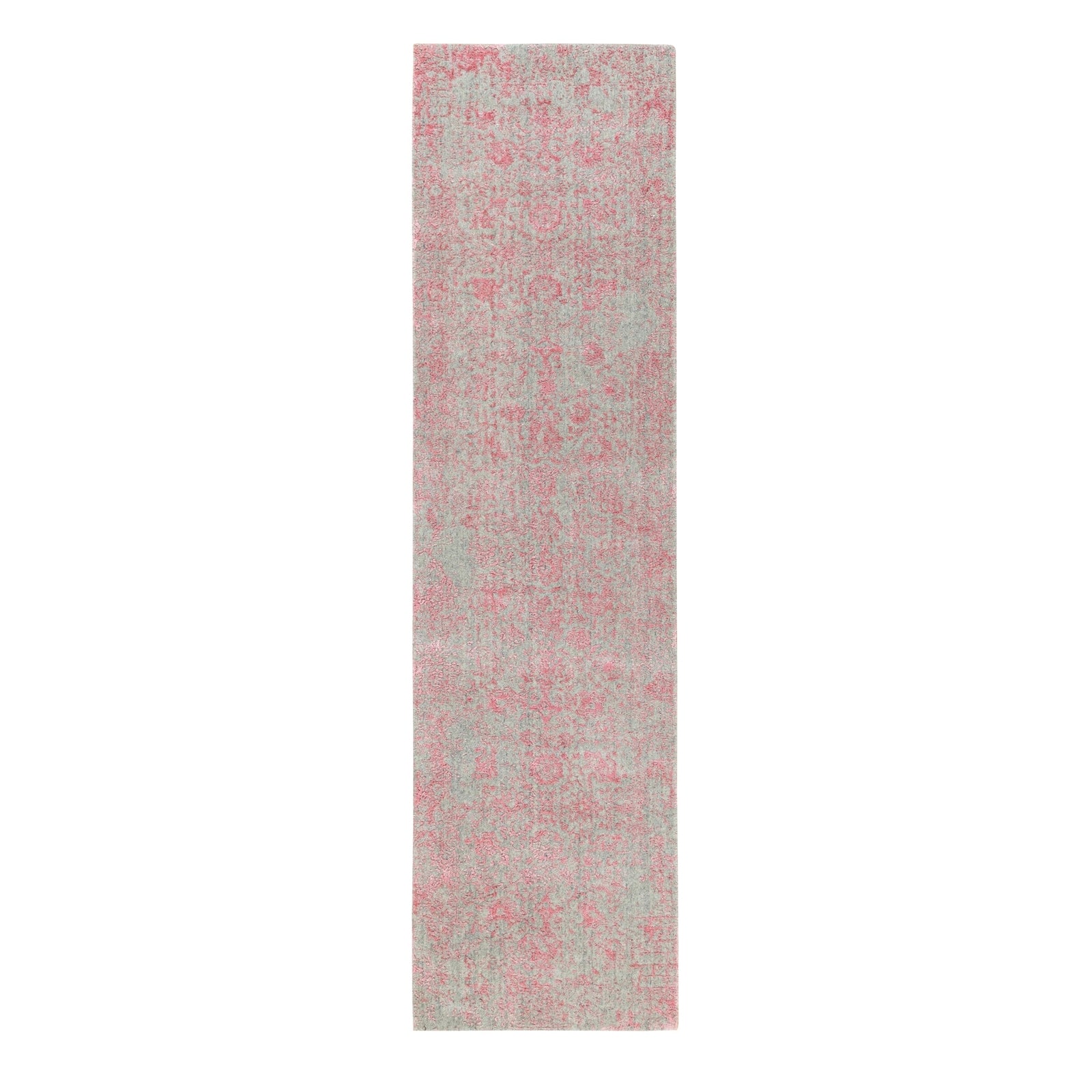 2'6"X9'10" Erased Farsian Design Wool & Art Silk Hand Loomed Jacquard Rug