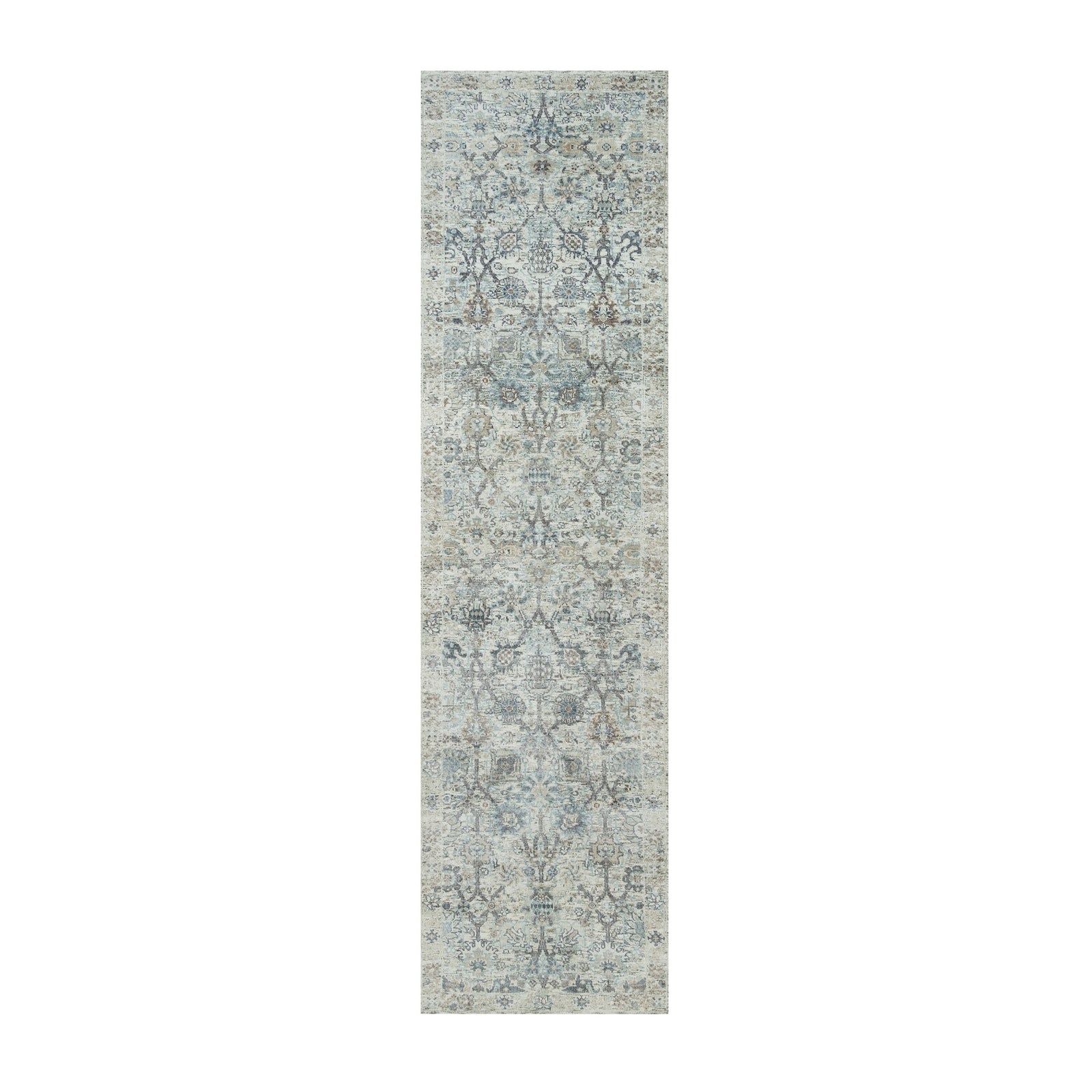 2'6"X9'10" Ivory Silk And Wool Hand Knotted Tebraz Vase Design Runner Rug