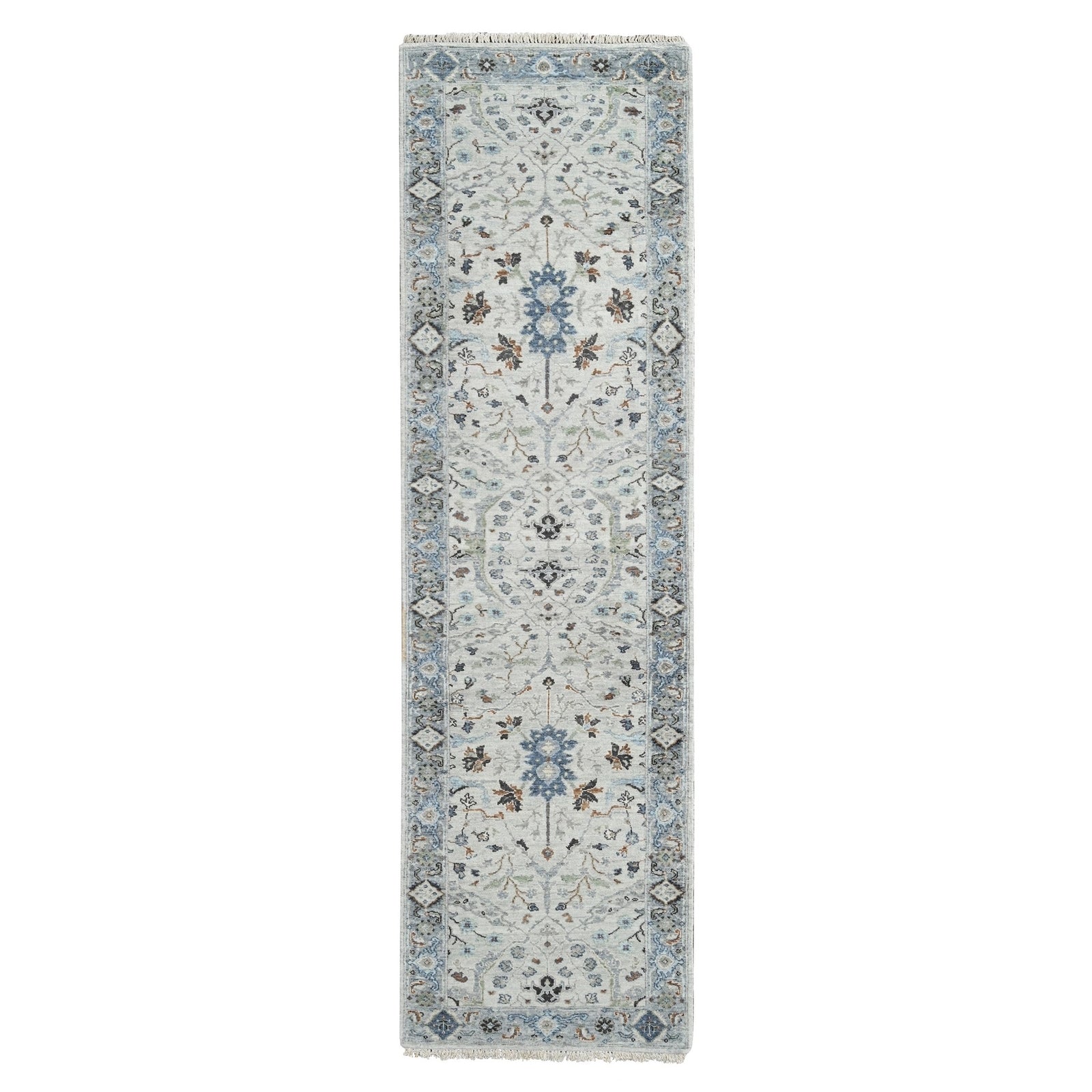 2'6"X9'10" Owl Gray Hand Knotted Oushak Dense Weave Wool Runner Rug