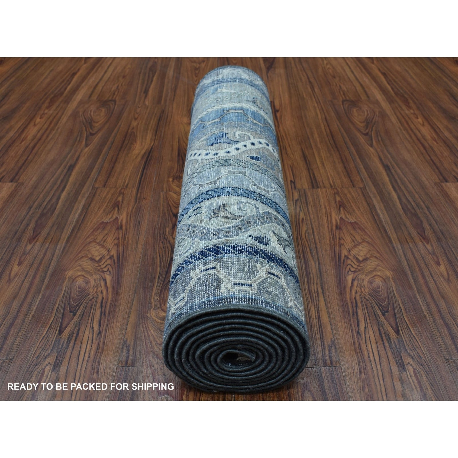 2'6"X9'7" Hand Knotted Gray Super Kazak With Shawl Design Wool Runner Rug