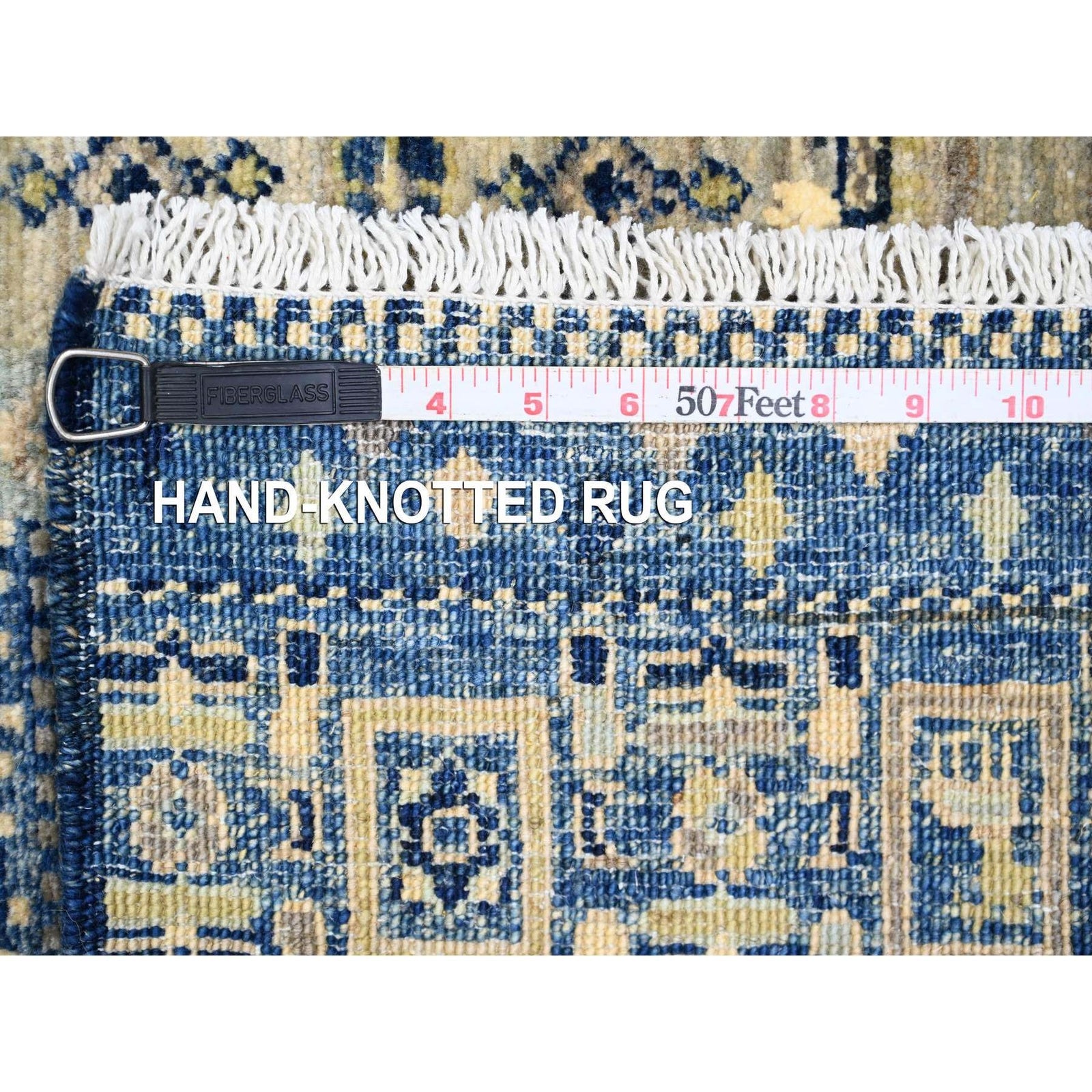 2'6"X9'8" Blue Hand Knotted Kashkuli Animal Figurines All Wool Runner Rug