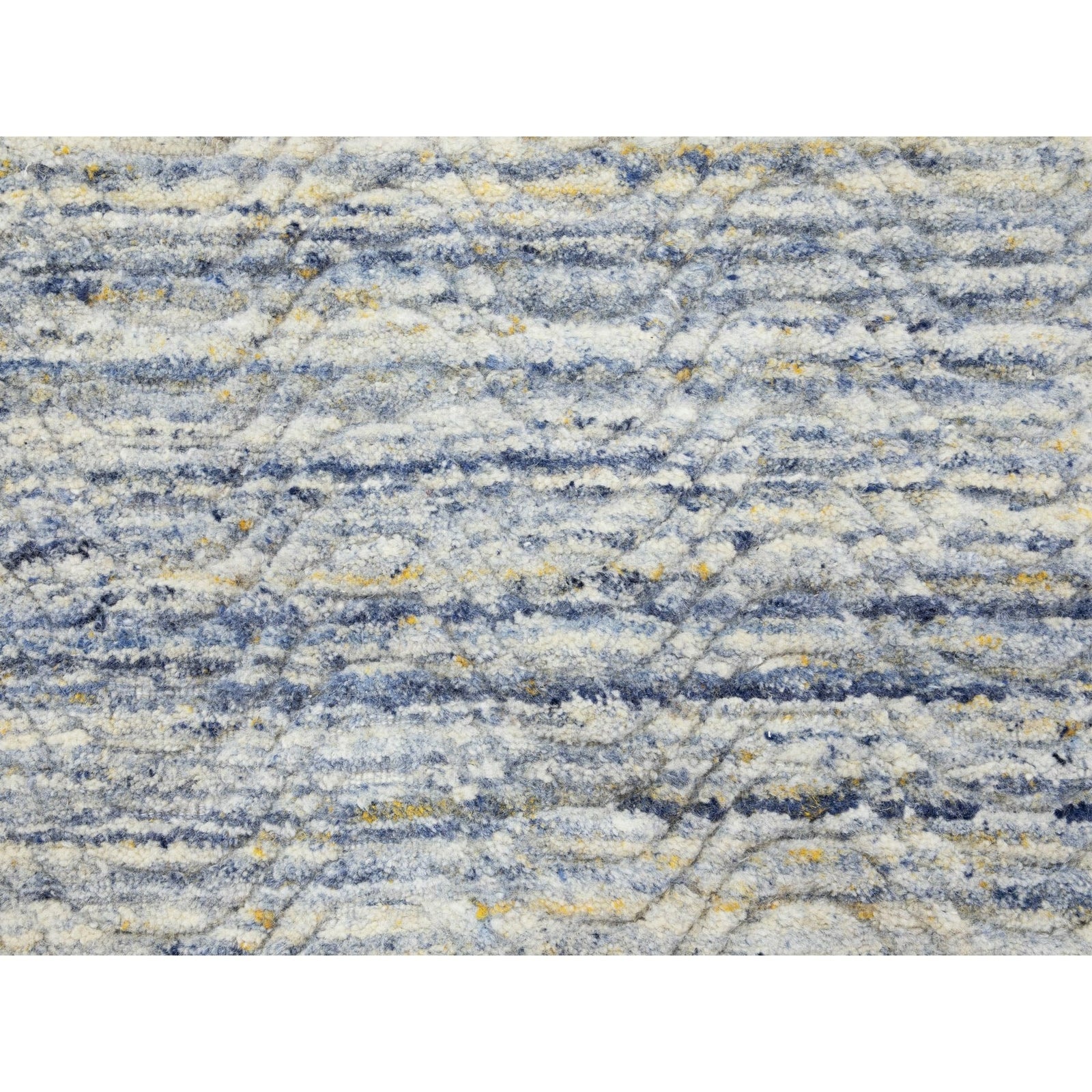 2'6"X9'9" Blue Variegated Design Hand Loomed Pure Wool Modern Runner Rug