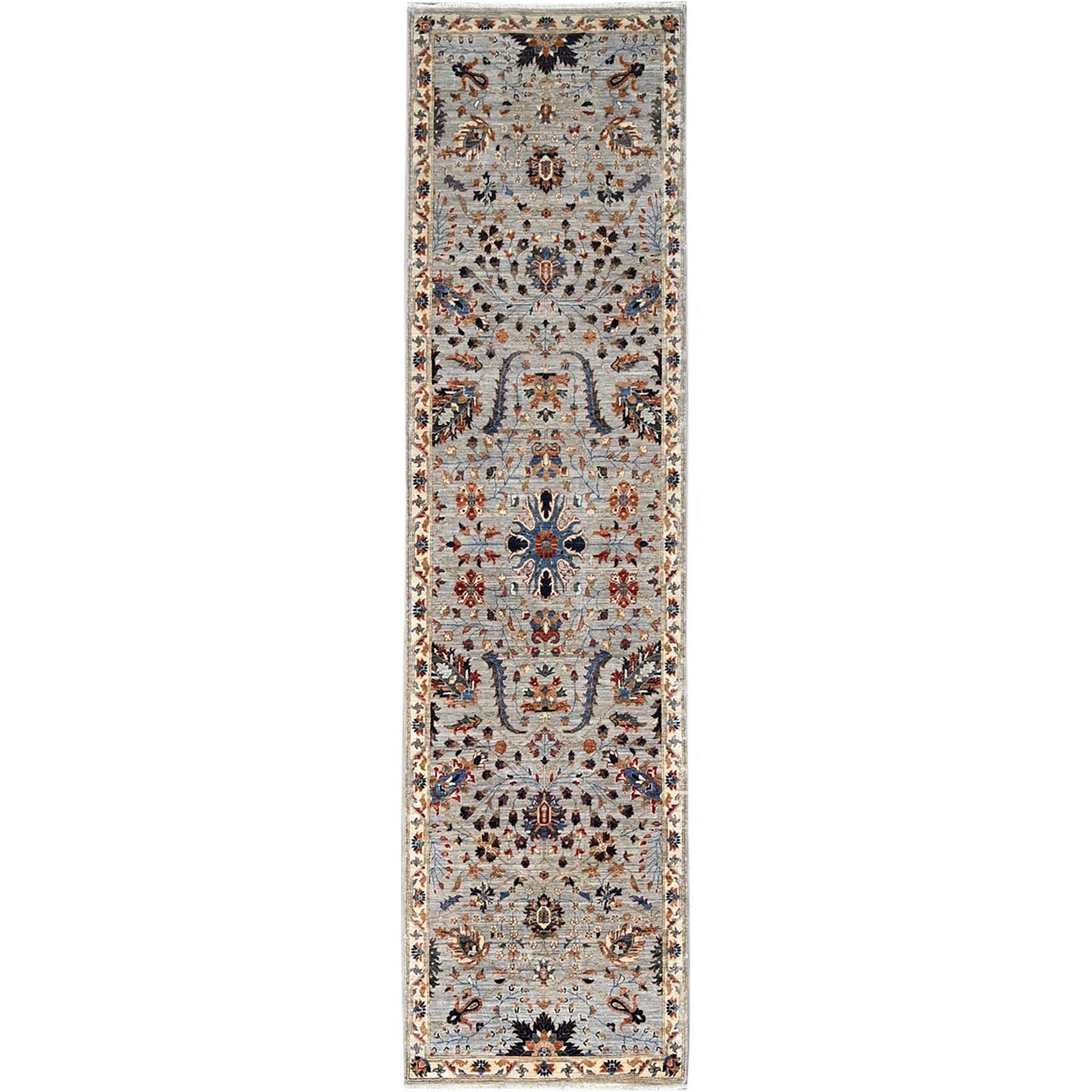 2'7"X10' Green Pure Wool Mamluk Dynasty Hand Knotted Runner 200 Kpsi Rug