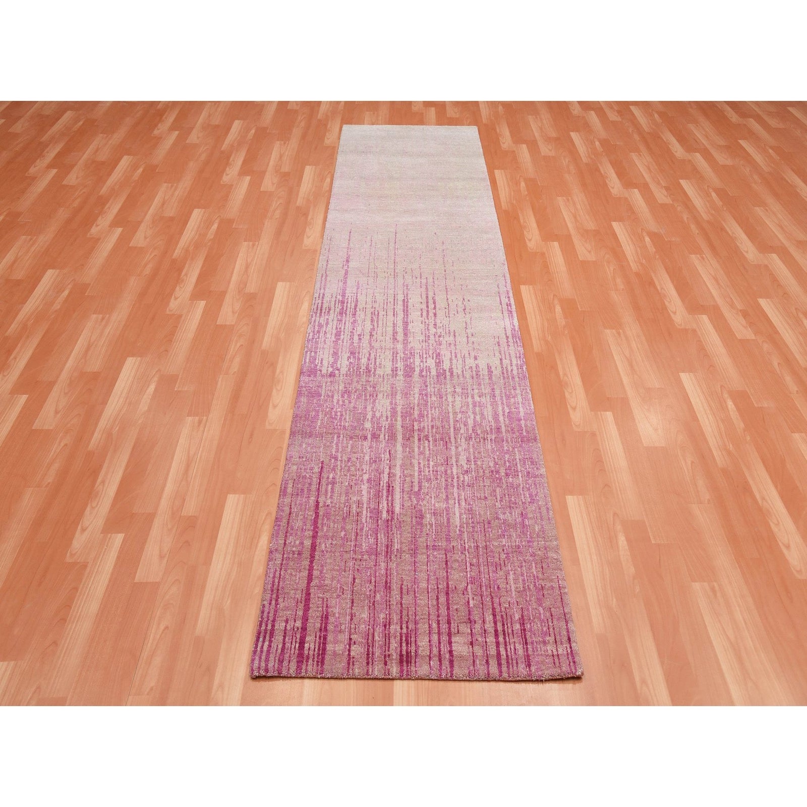 2'7"X10' Pink Hand Knotted Vertical Ombre Design Natural Wool Runner Rug