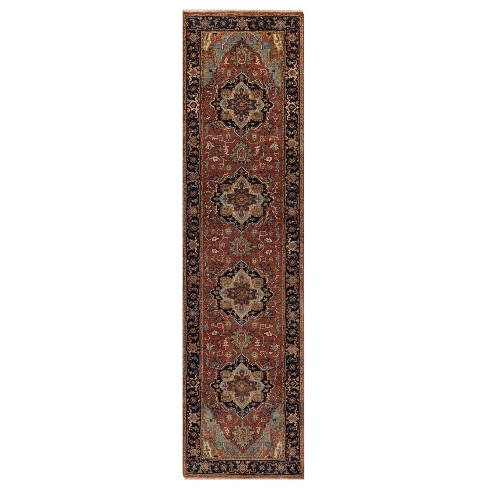 2'7"X10' Red Antiqued Fine Heris Re-Creation Hand Knotted Wool Runner Rug