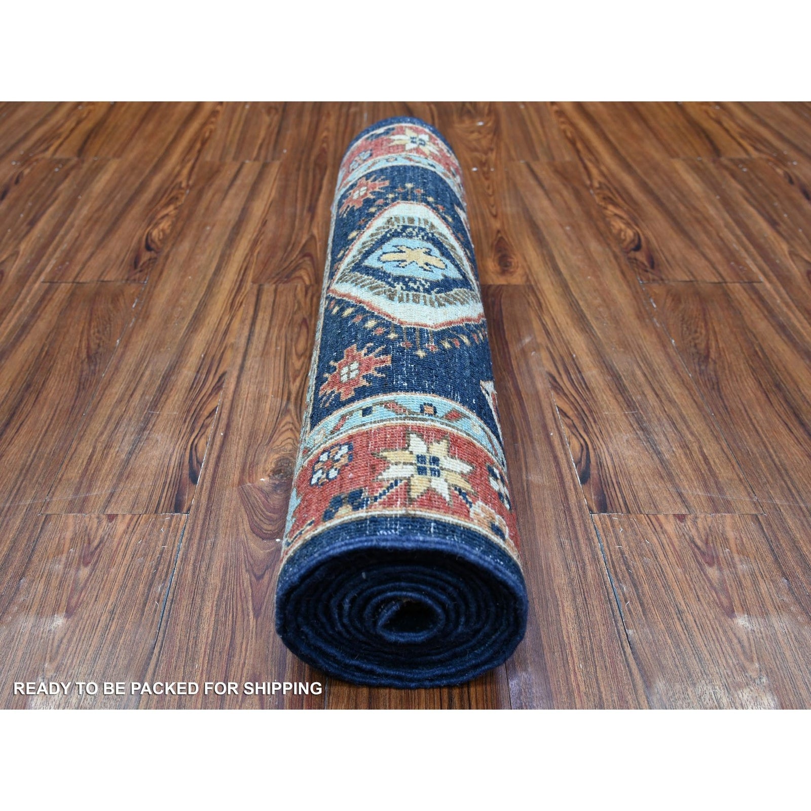 2'7"X11'8" Blue Karajeh Design Pure Wool Fine Aryana Runner Oriental Rug