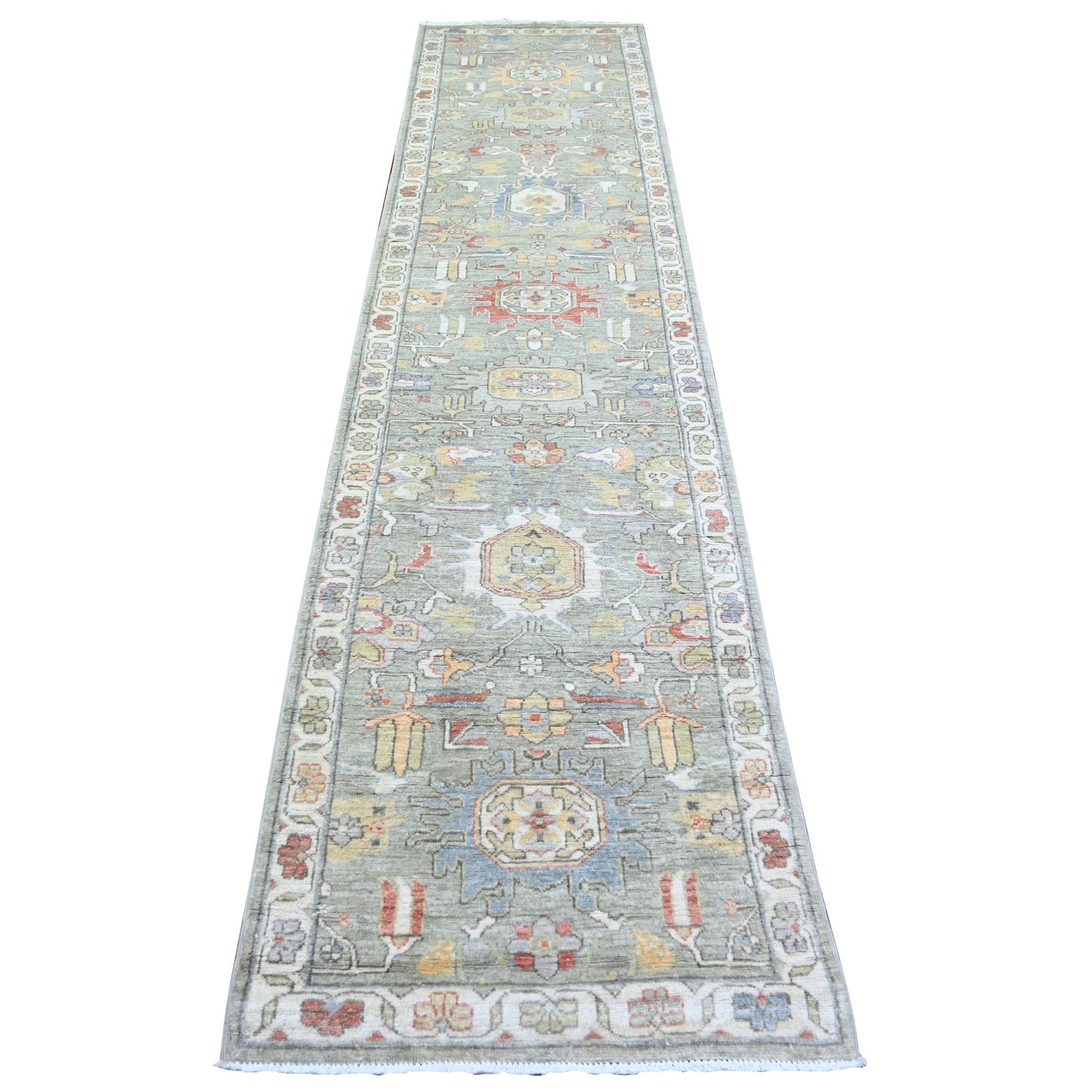 2'7"X11'9" Echo Gray Pure Wool Hand Knotted Finer Peshawar Runner Rug