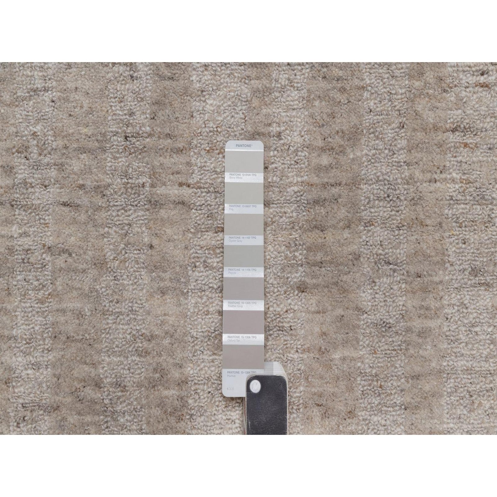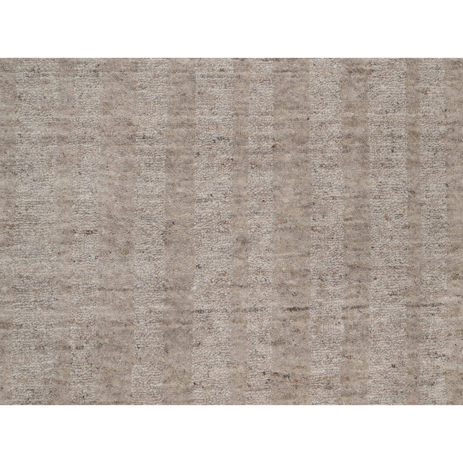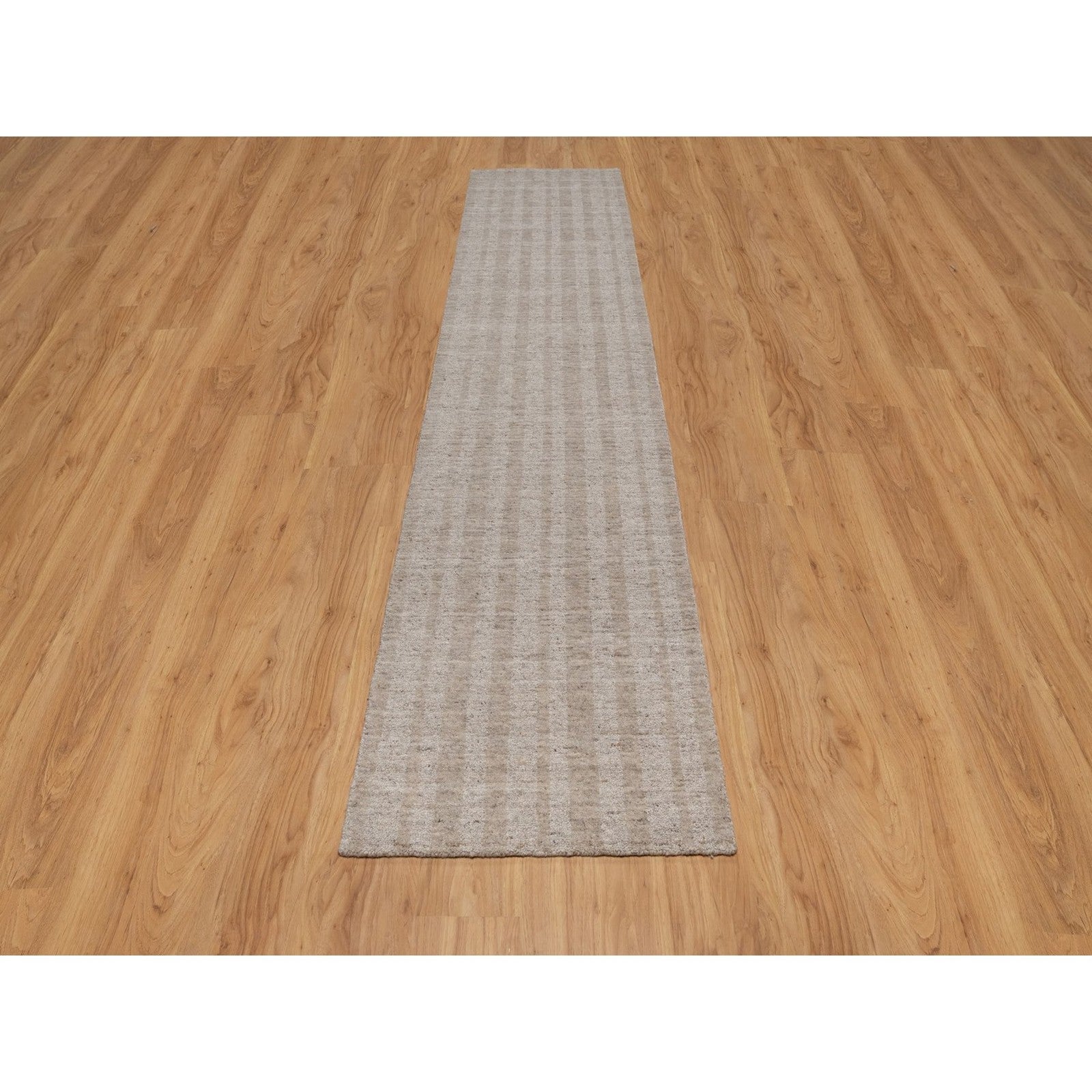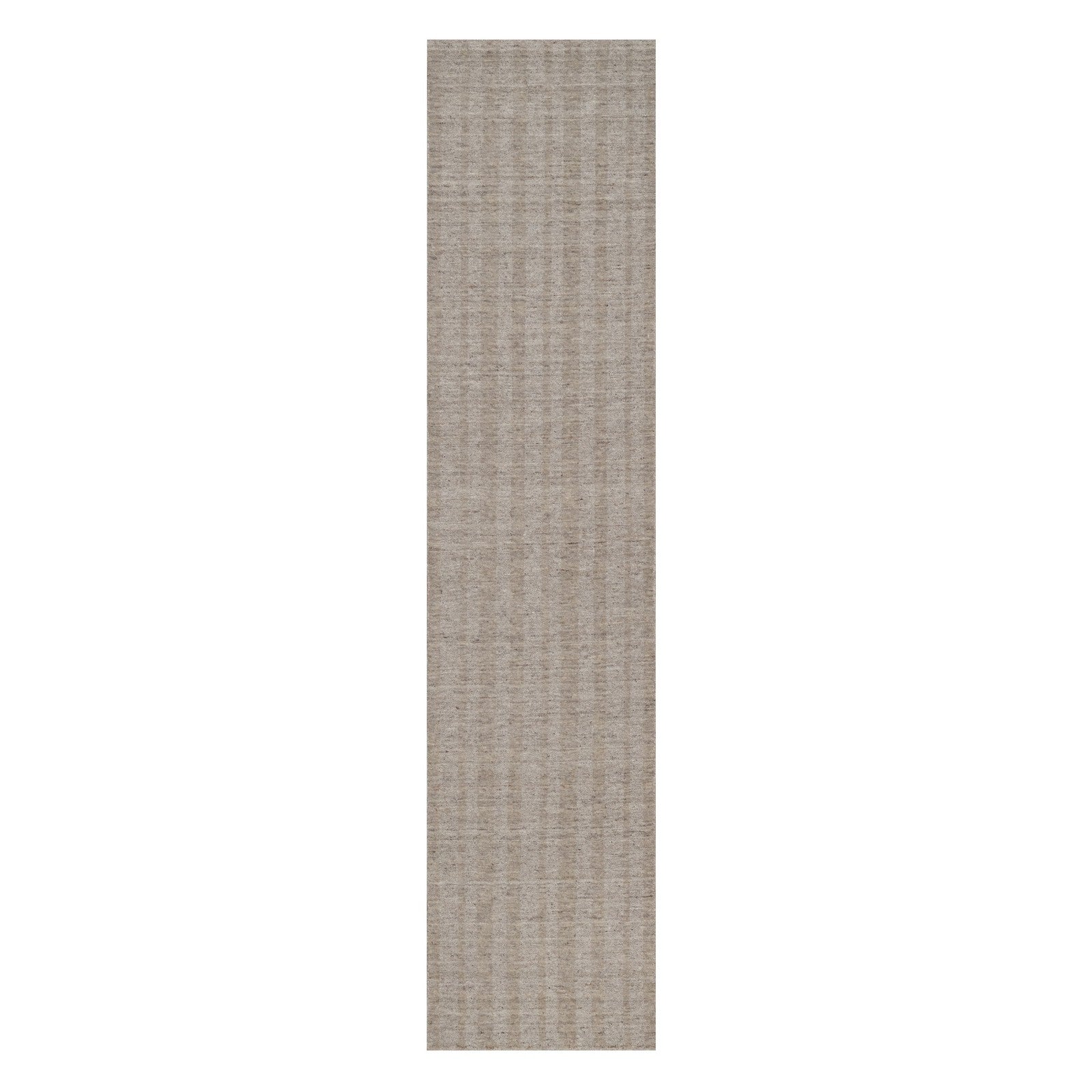 2'7"X12' Brown Pure Wool Vertical Stripes Design Hand Loomed Runner Rug