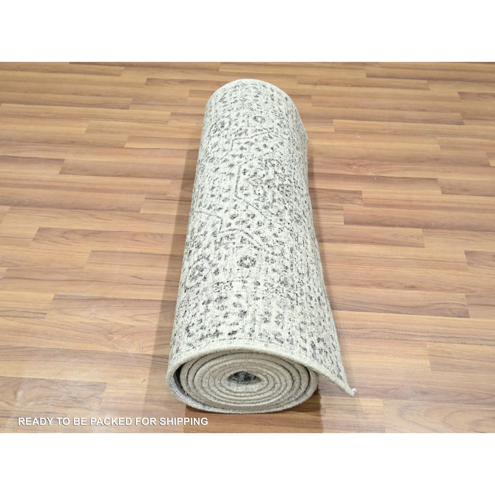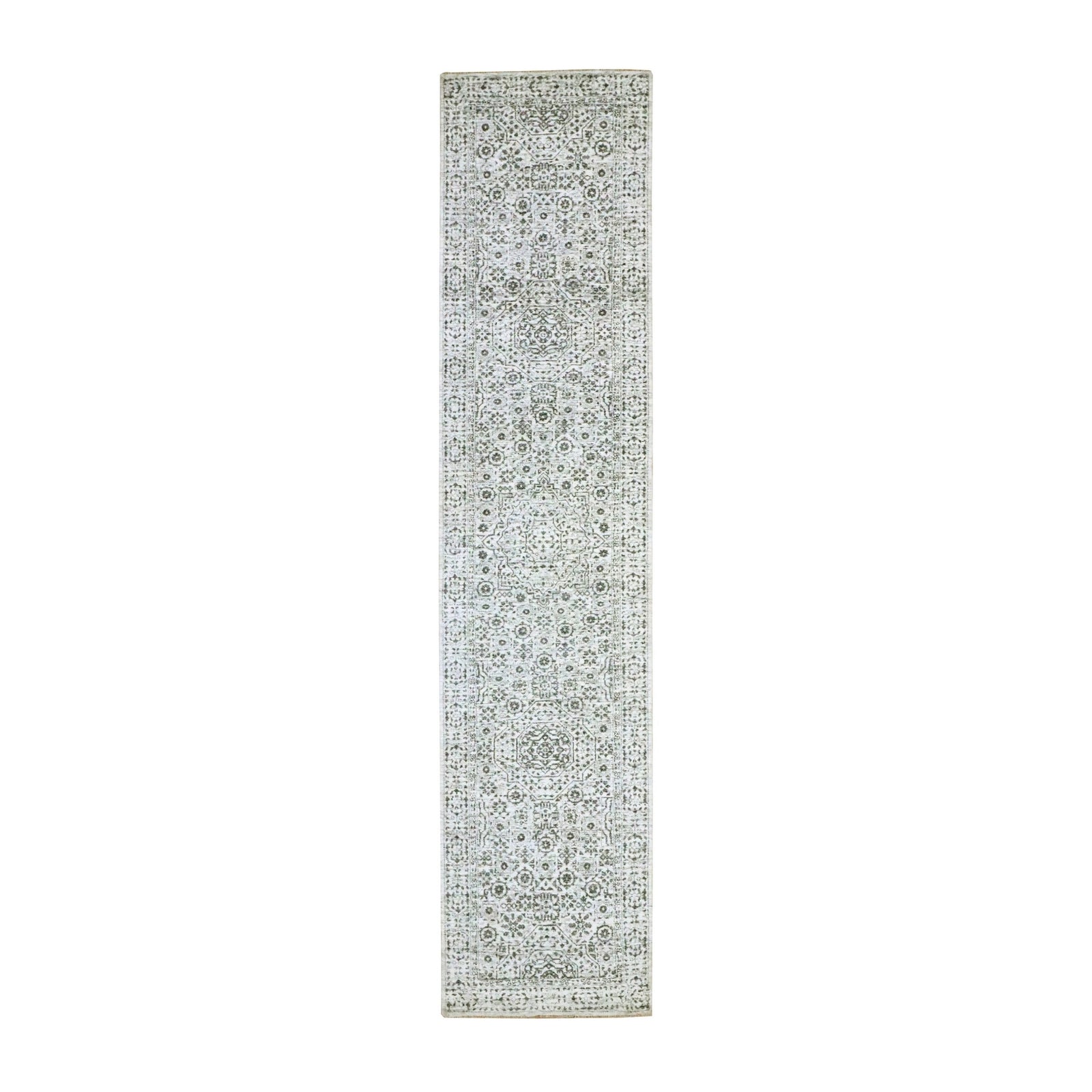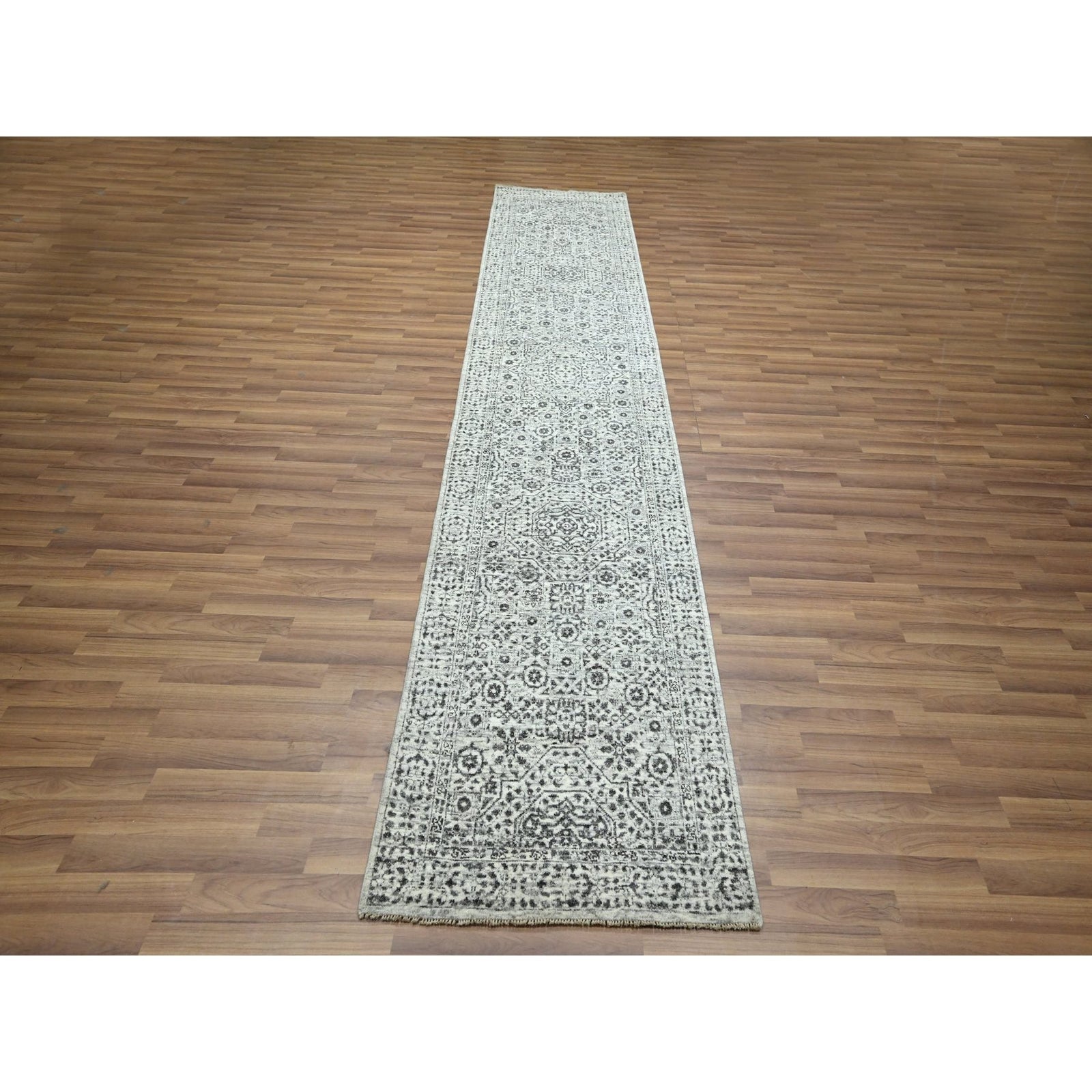 2'7"X12' Ivory Pre Historic Mamluk Design Hand Knotted Wool Runner Rug
