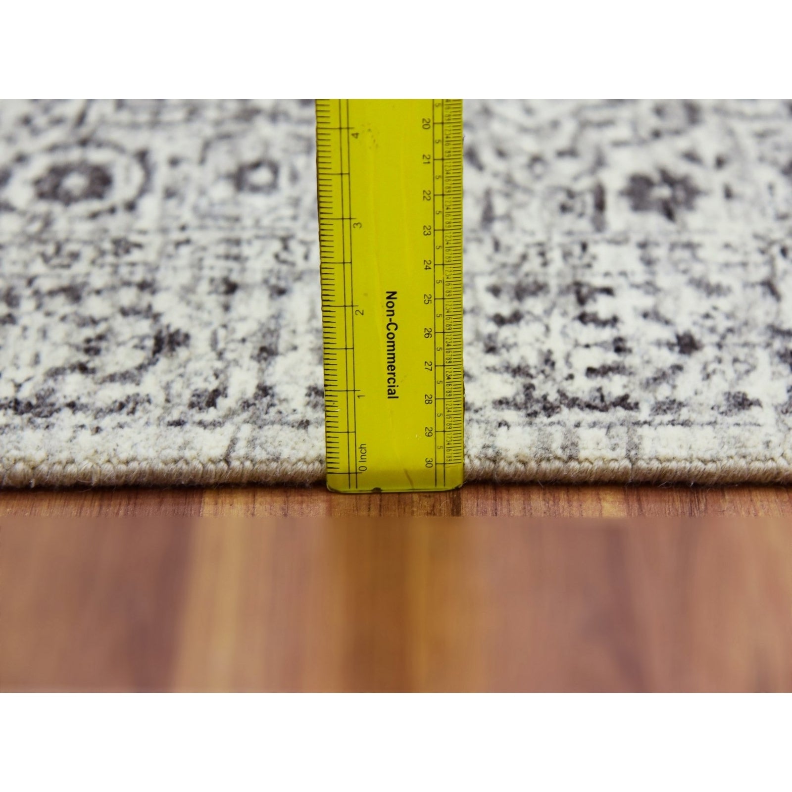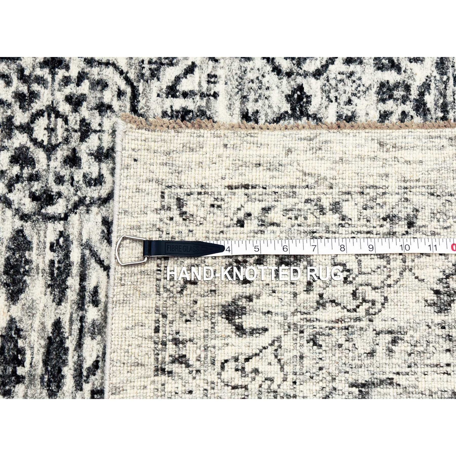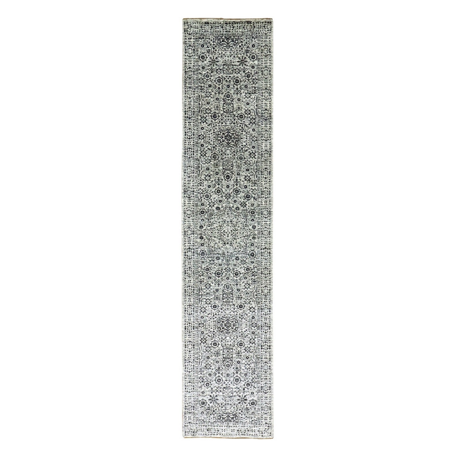 2'7"X12' White Mamluk Dynasty Design Undyed Wool Hand Knotted Runner Rug