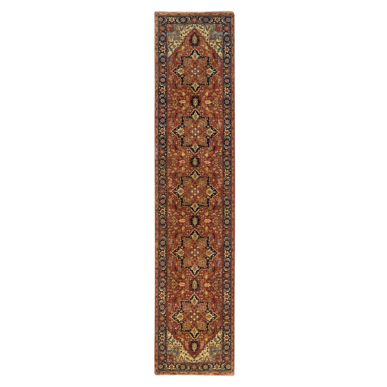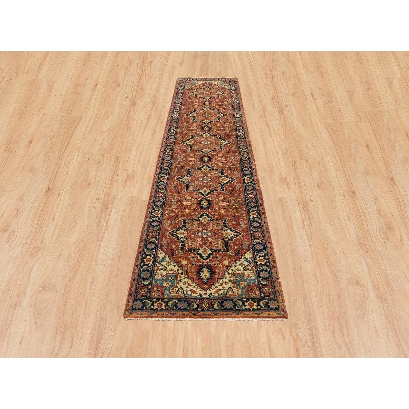 2'7"X12'1" Red Hand Knotted Heris Re-Creation Organic Wool Runner Rug